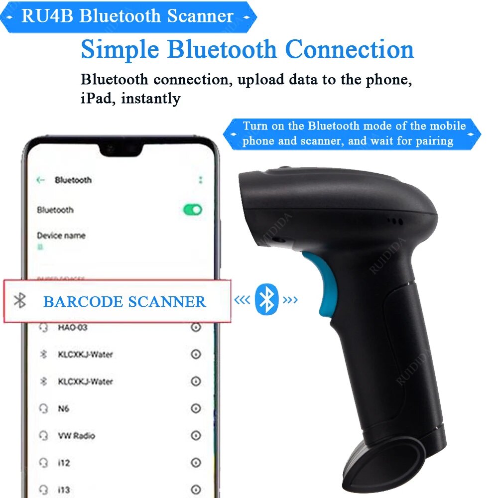 Беспроводной портативный сканер штрих-кода, RU4B--Bluetooth