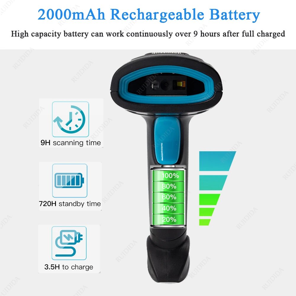 1D 2D проводной сканер штрих-кода беспроводной портативный считыватель 2d Bluetooth сканер qr-кода ручной считыватель штрих-кодов leitor de codigo de barra, RU4W with Stand интересное: