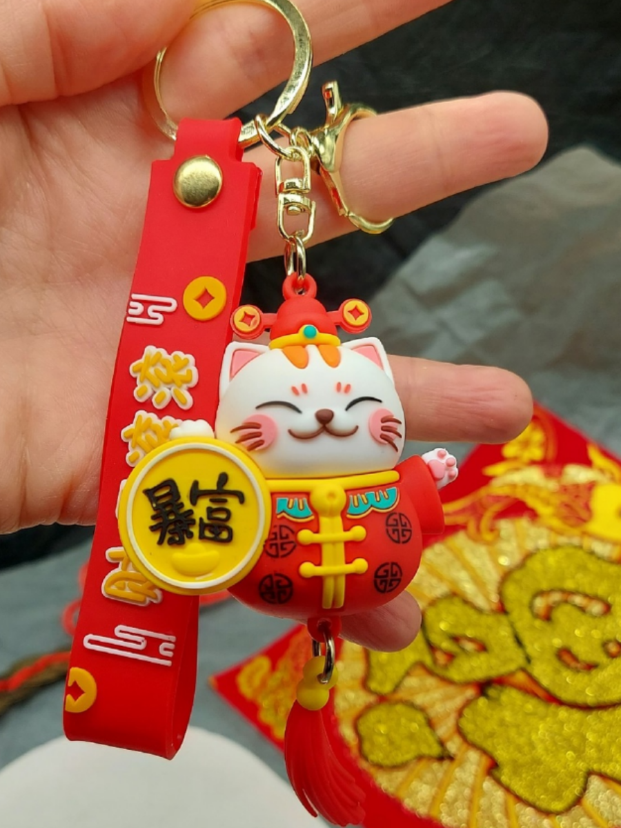 Брелок для ключей кошечка манеки rich-неко с монеткой привлечение денег и финансового успеха