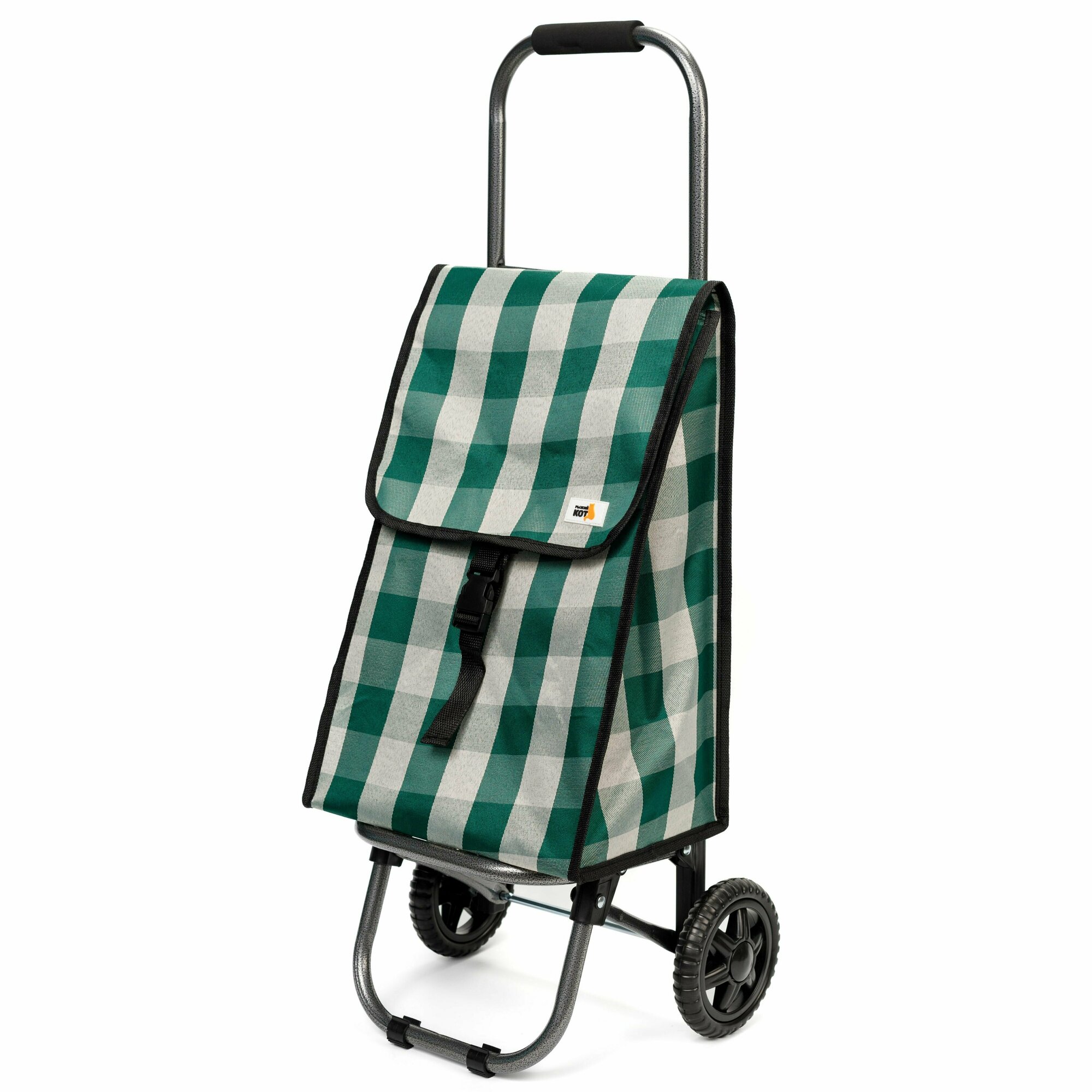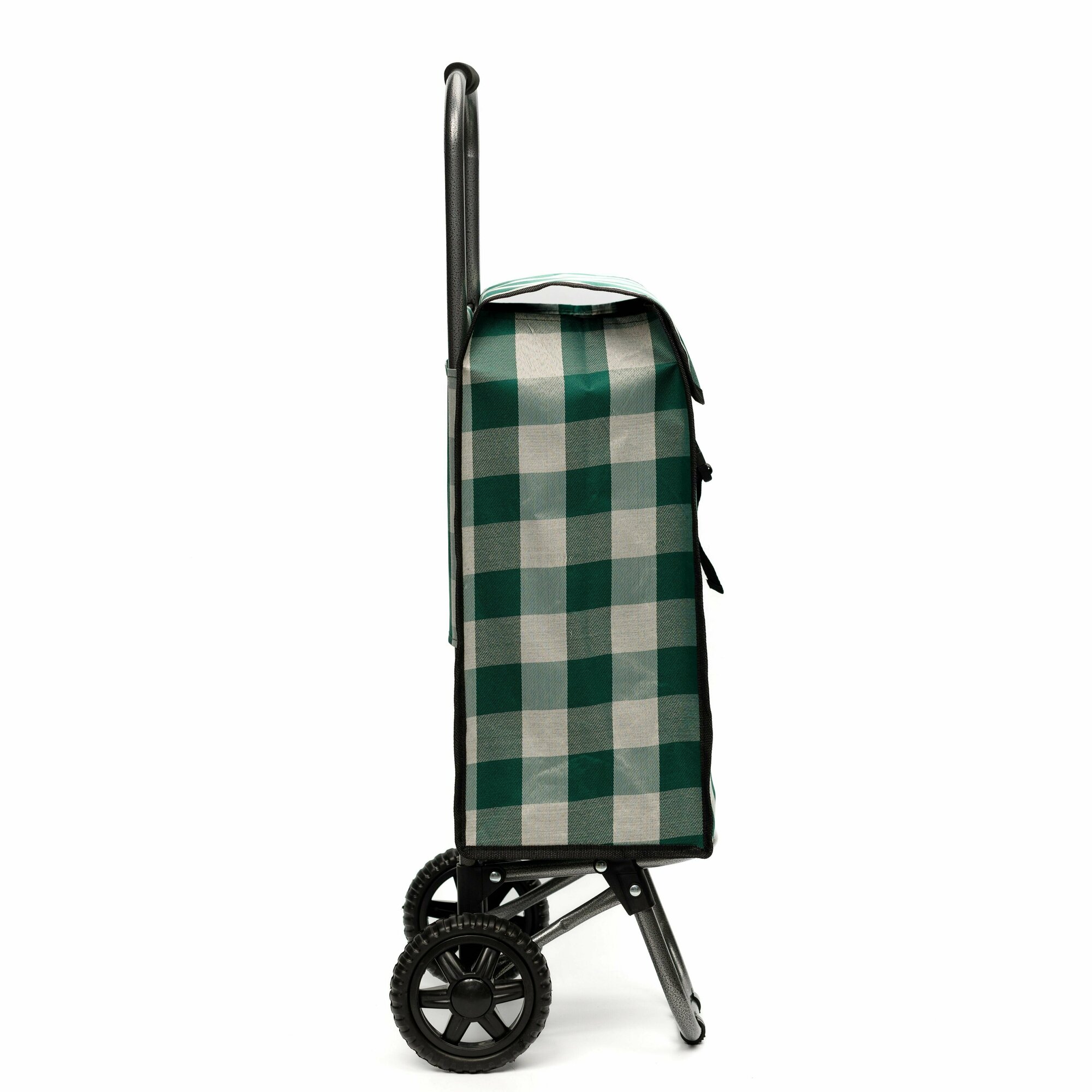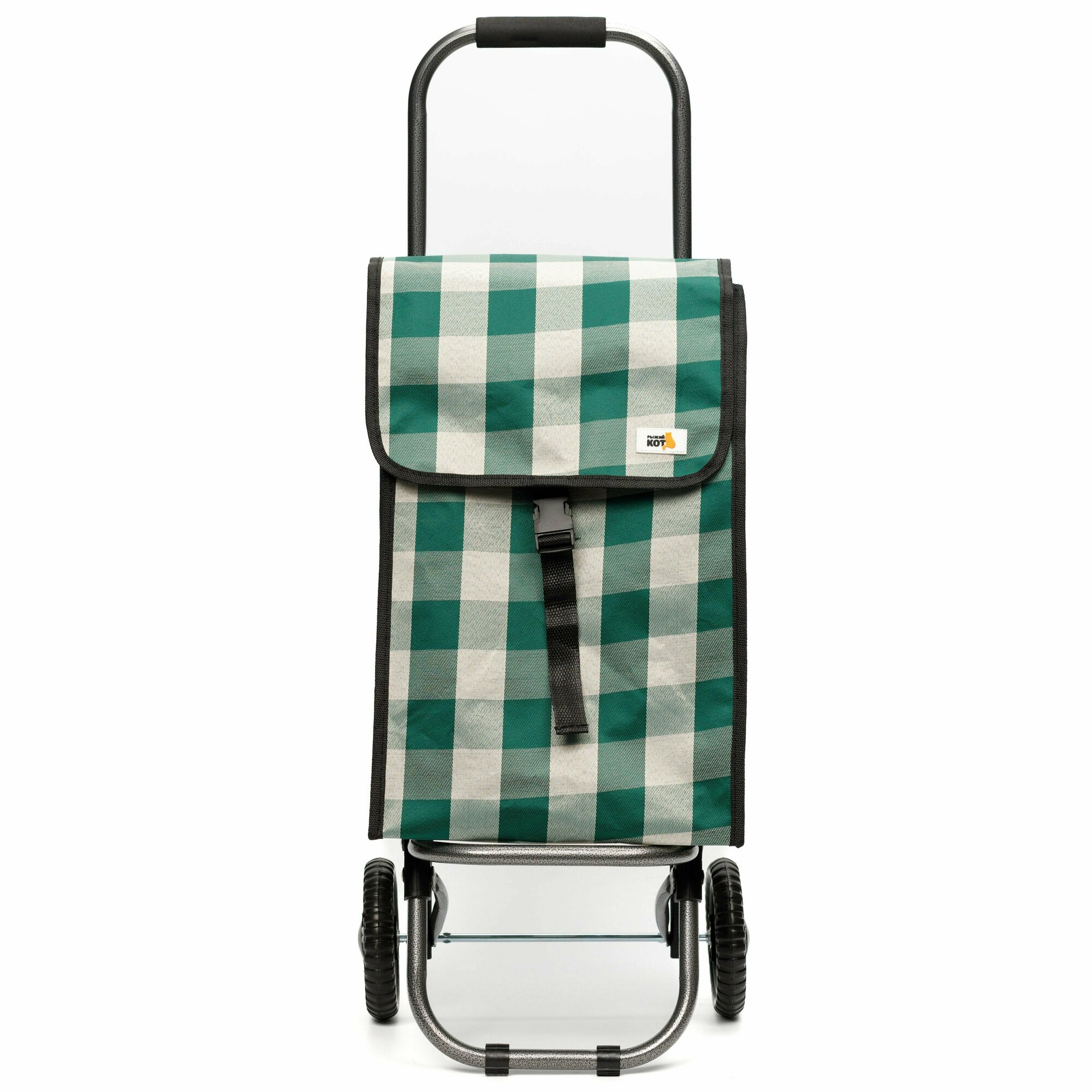 Сумка-тележка Рыжий кот, складная на колесах, хозяйственная, нагрузка 30 кг, светло-зеленая клетка