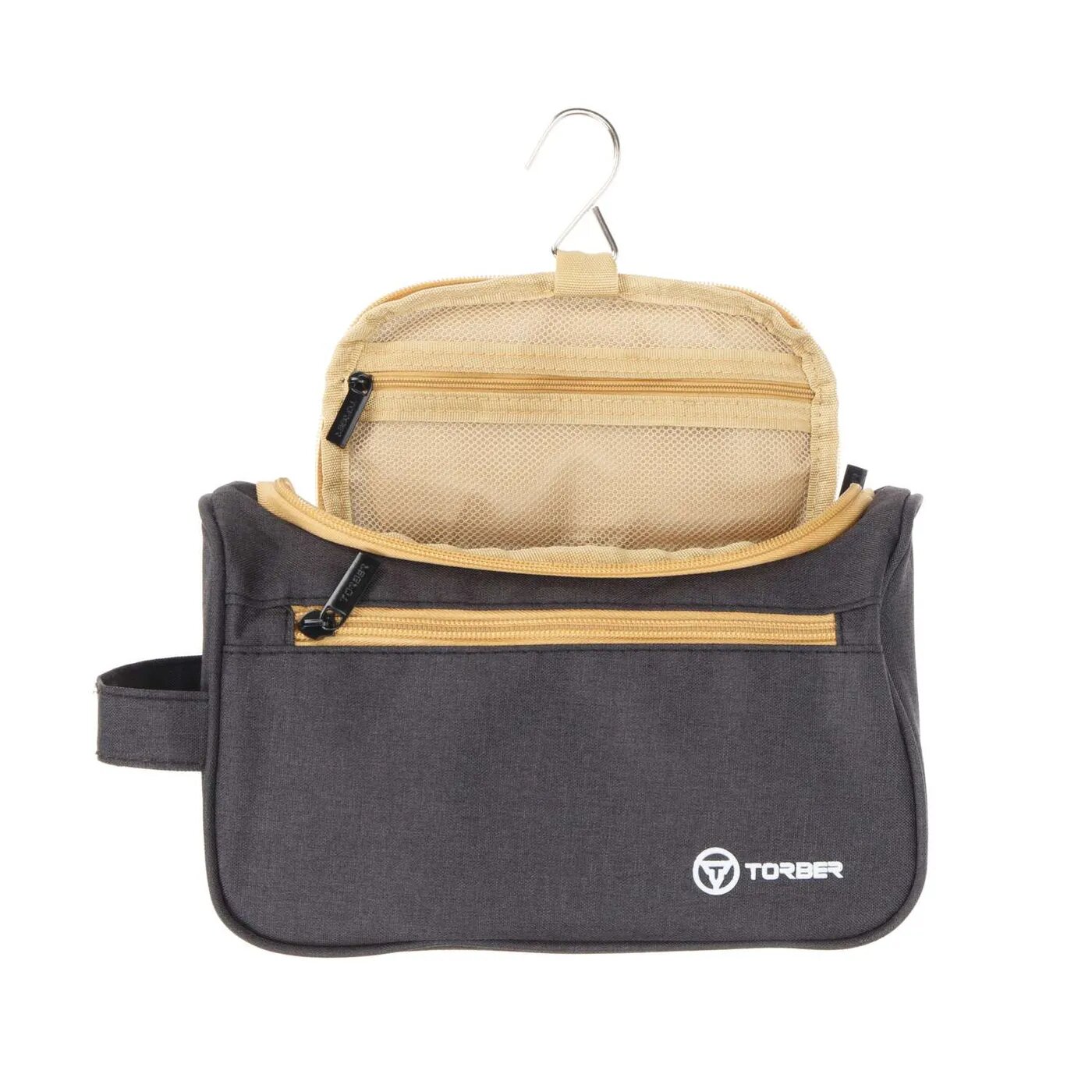 Купить Несессер TORBER, дорожный, чёрный/бежевый, полиэстер 300D, 24 х 16 х 9 см