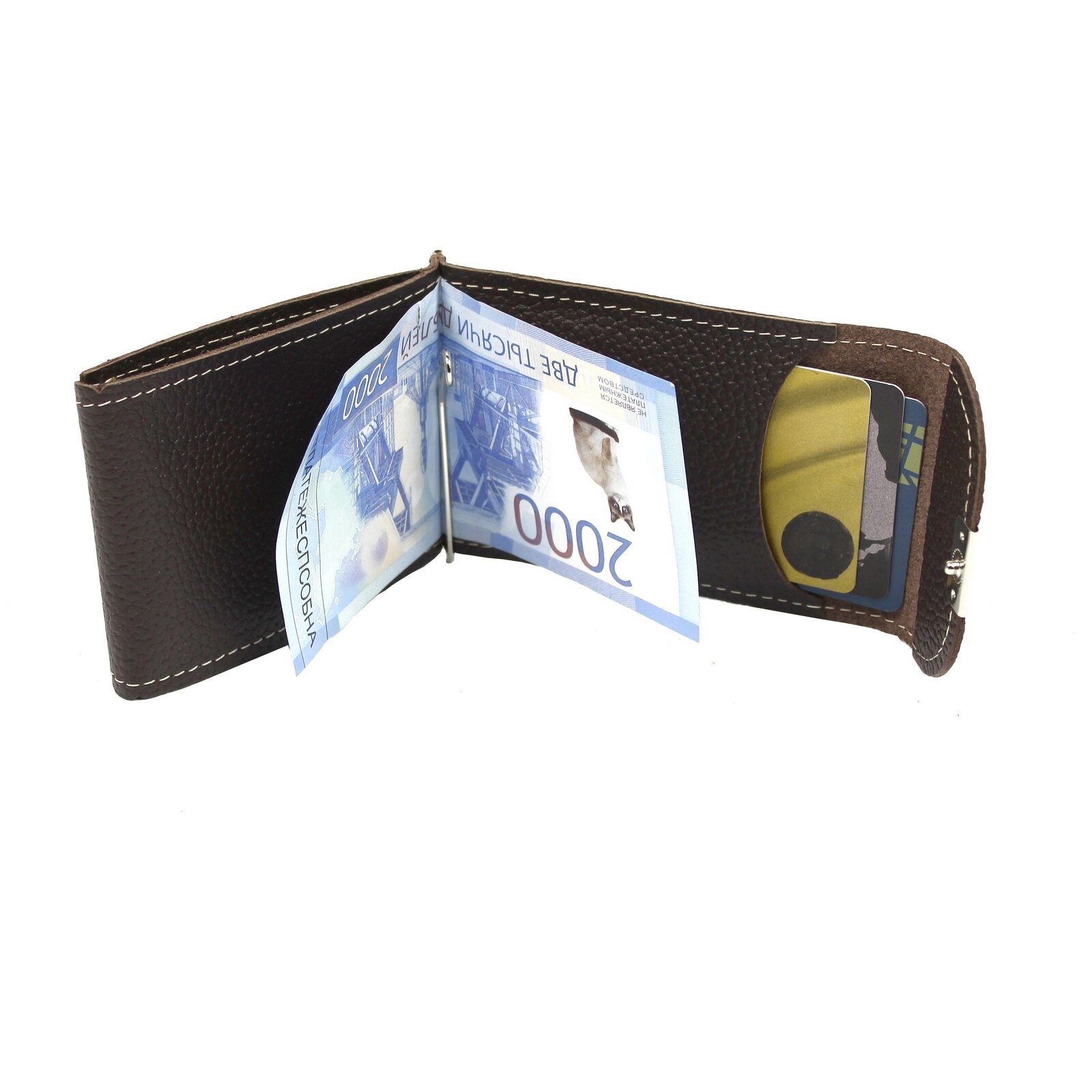 Зажим для купюр, зк300-219, натуральная кожа, цвет темно-коричневый