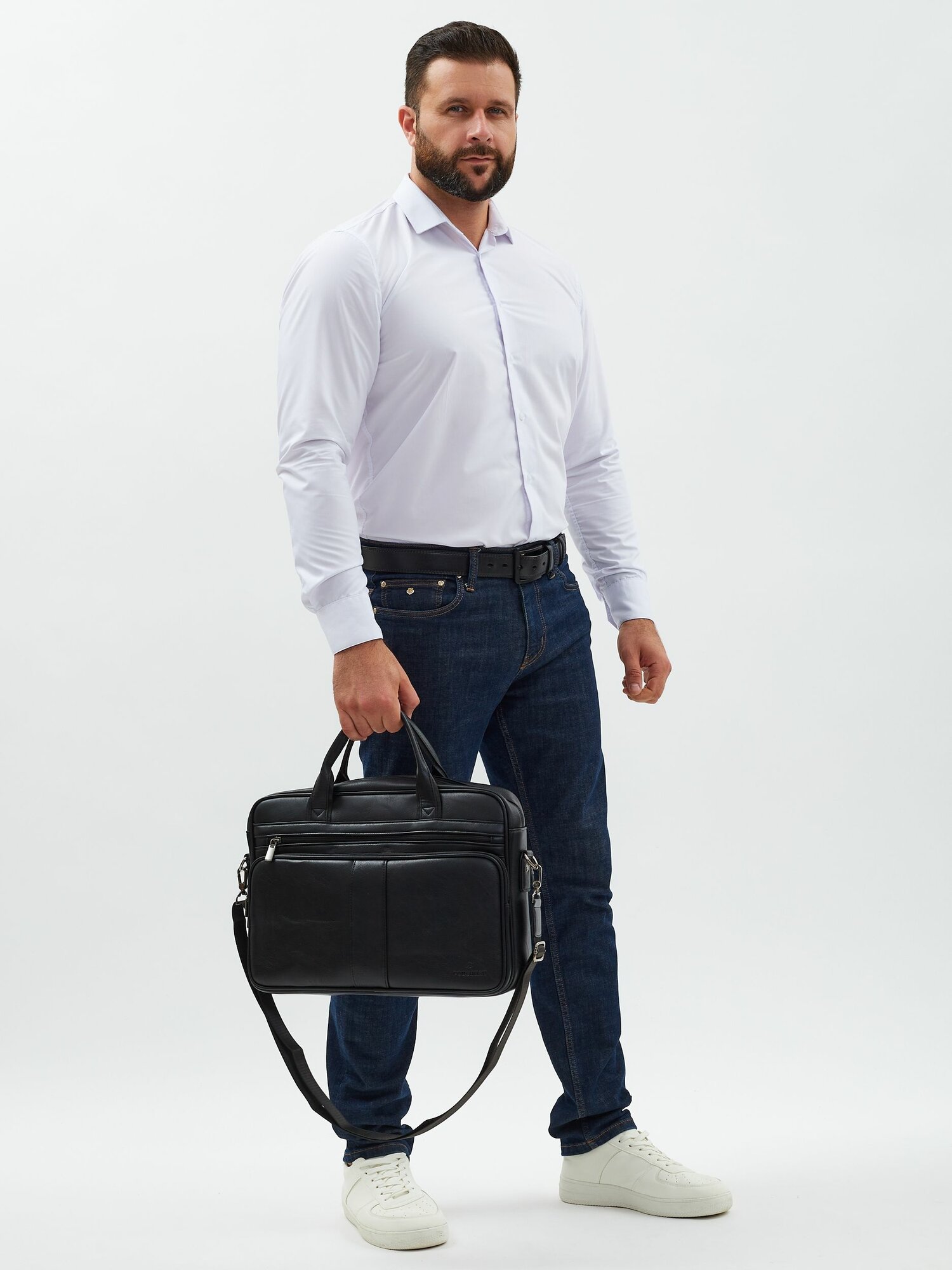 Портфель мужской PouchMan кожаный, сумка для документов, сумка А4 из экокожи интересное: