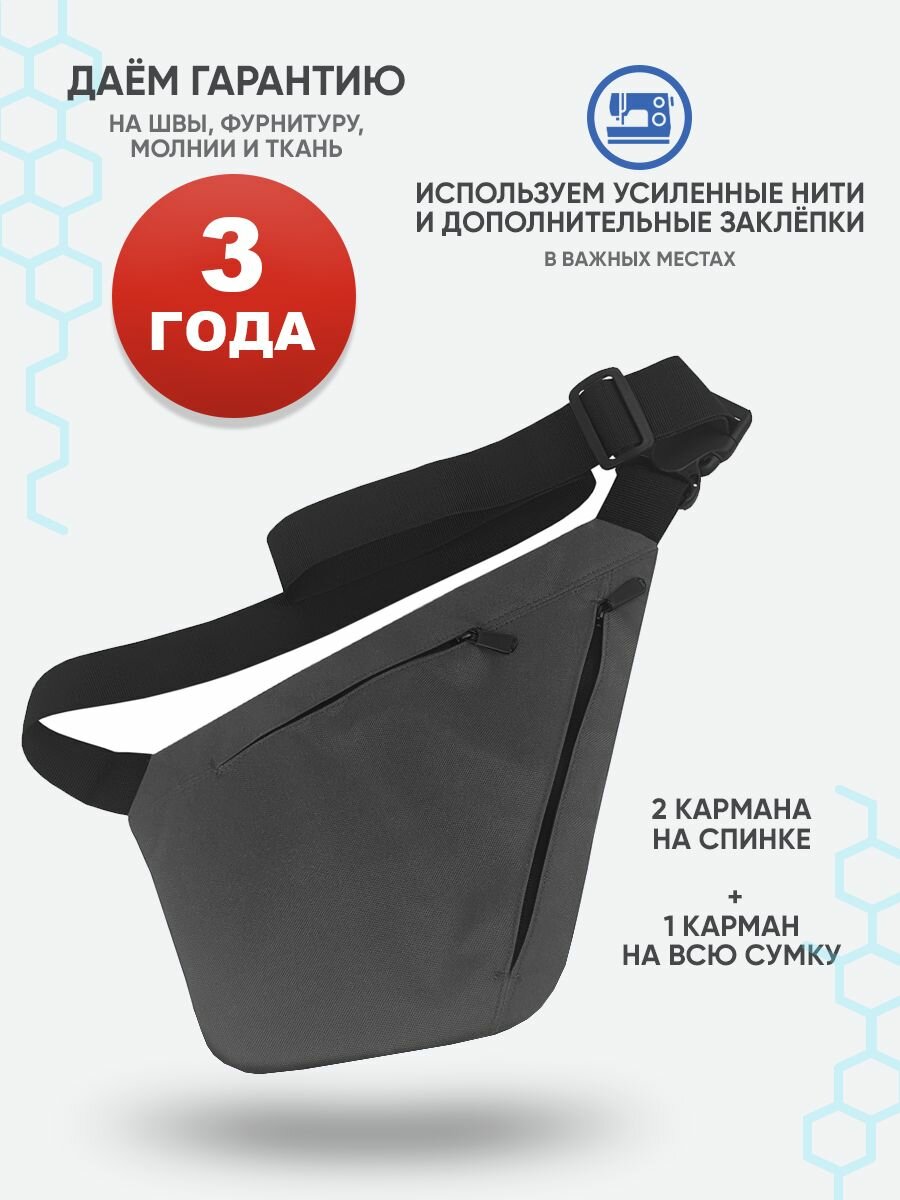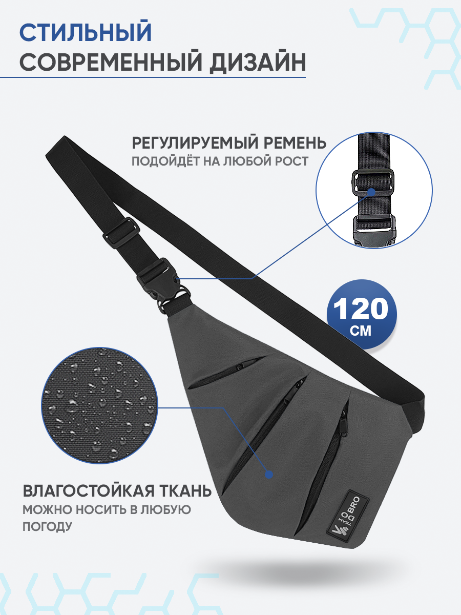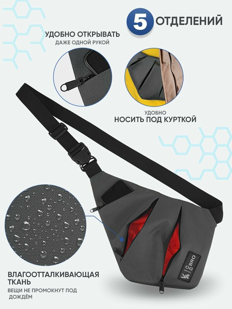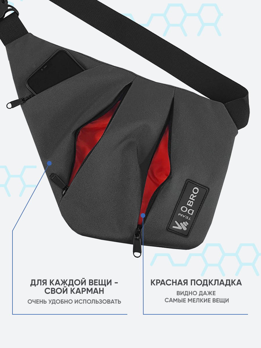 Сумка через плечо Do Bro Hidden серая, на плечо, мужская, подростковая интересное:
