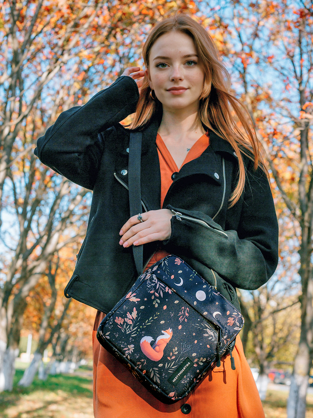 Сумка-мессенджер студенческая через плечо с принтом Лунная Лиса