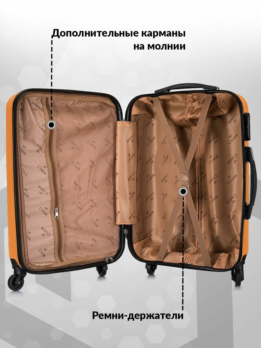 Чемодан на колесах M средний, оранжевый - Чемодан ABS - пластик, семейный Lcase