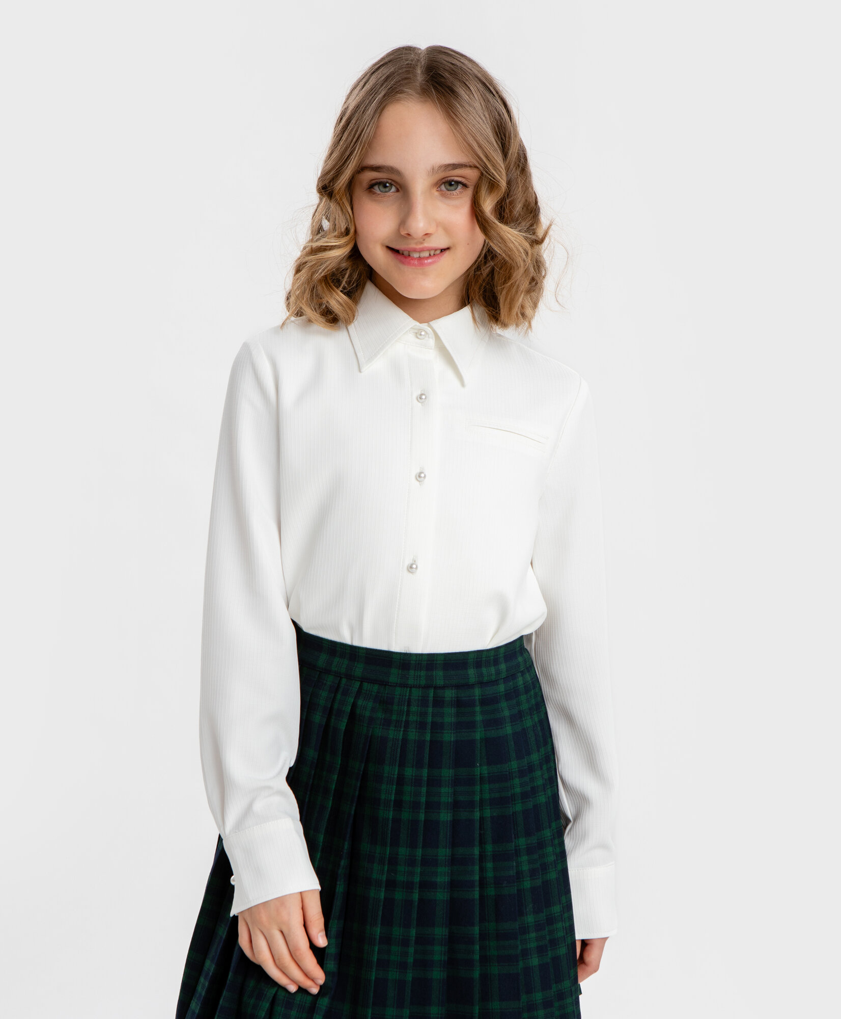Блузка с длинным рукавом в мелкую клетку молочная Button Blue, р. 164, мод. 224BBGS22260200