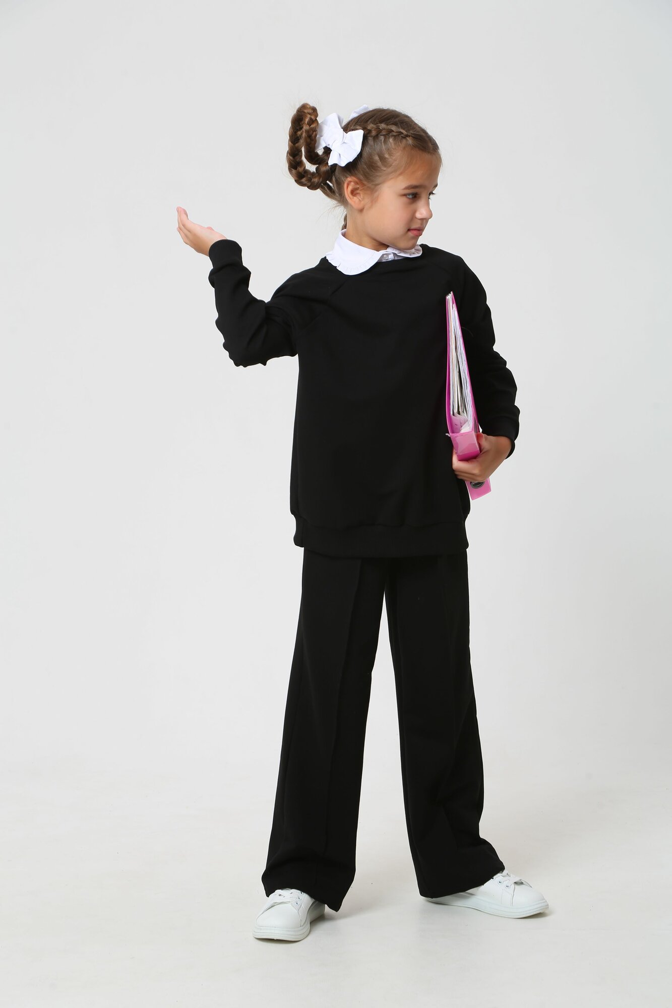Детский спортивный костюм, Mitra, штаны и лонгслив, теплый, футер, размер 152, черный, осень - зима, для девочки, домашний костюм, повседневный