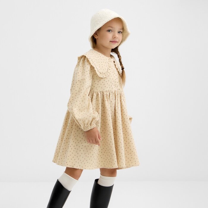 Купить Платье детское с воротником KAFTAN р.30 (98-104 см), бежевый