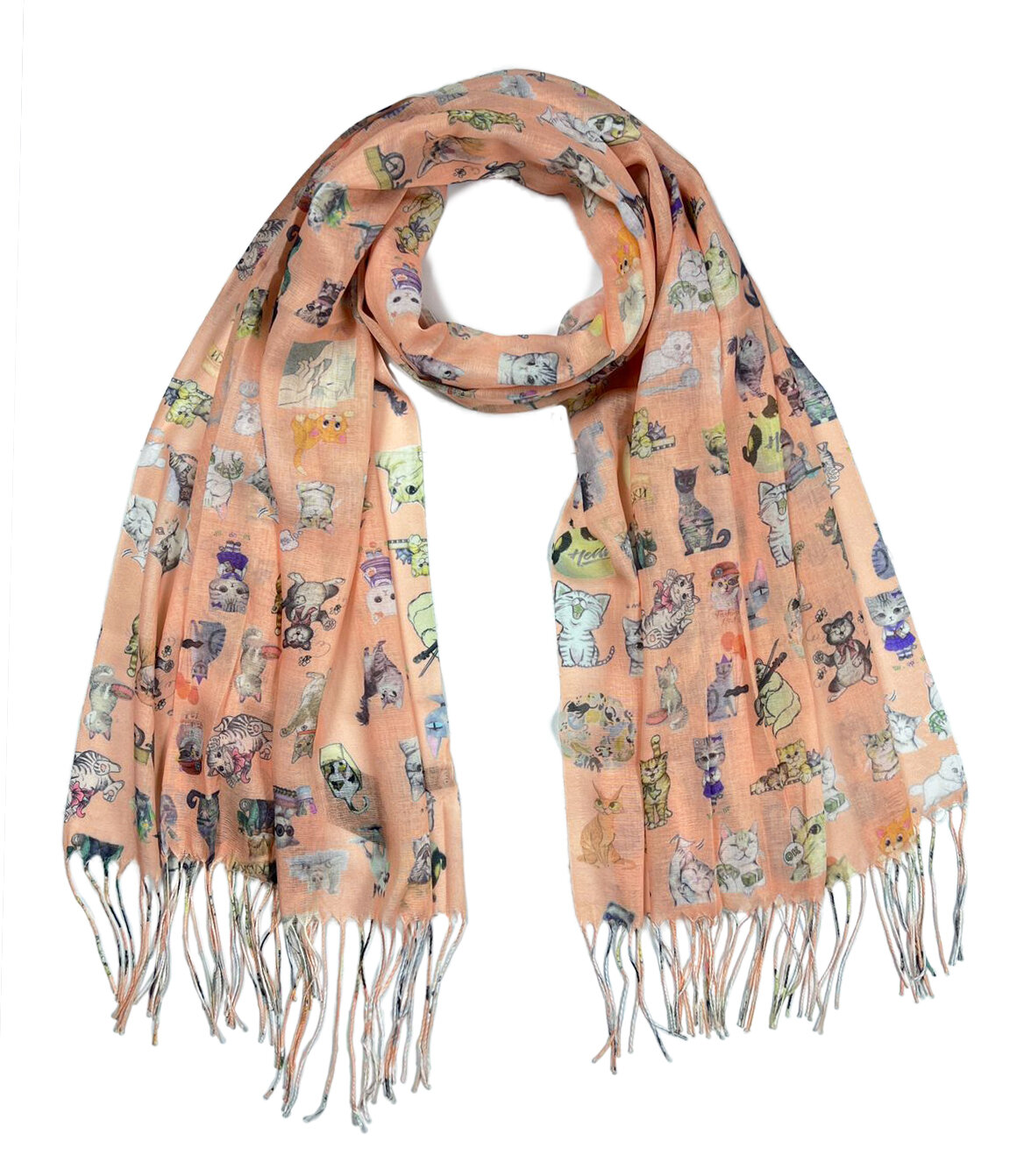 Купить Хлопковый женский палантин с модными котами, новинка 2024г, женский платок с кошками, оранжевый