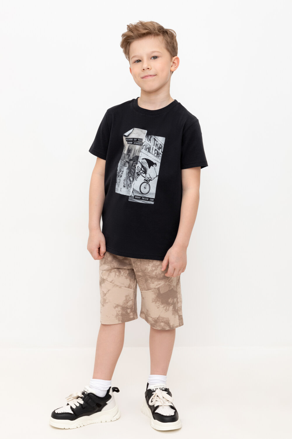 Шорты Crockid КР 400743/темно-бежевый,тай-дай к510 р 76/146 для мальчика из натурального хлопка
