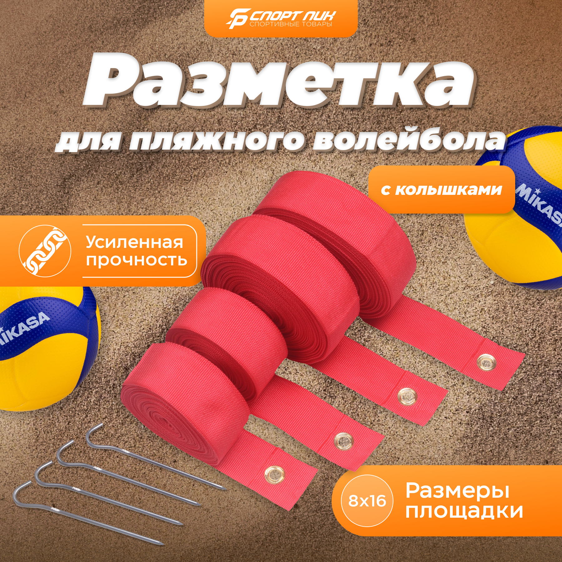 Разметка площадки СпортПик, для пляжного волейбола, с колышками, красная, 8х16 м интересное:
