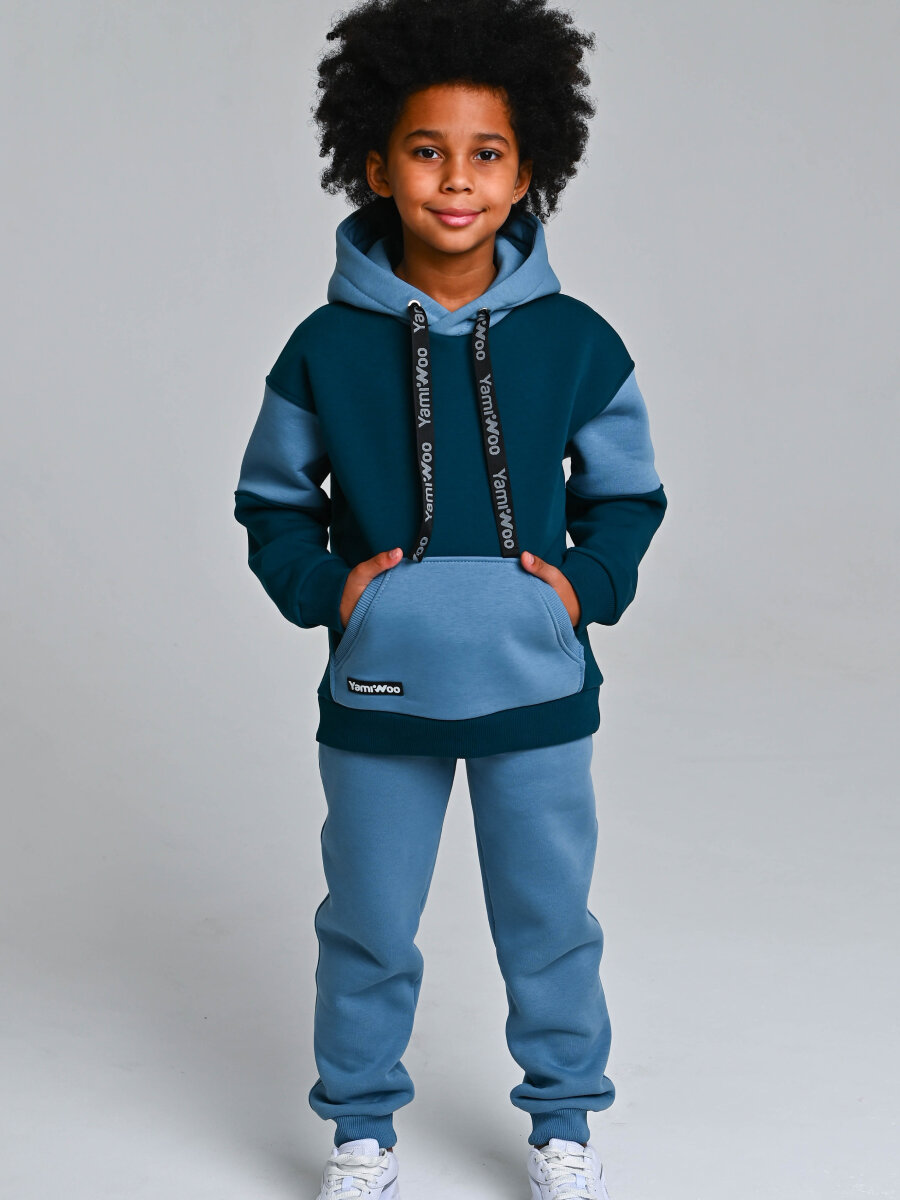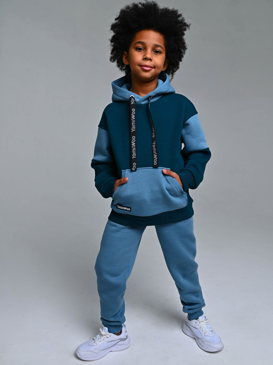 Купить Спортивный костюм для мальчика с начесом Yamiwoo, изумруд голубой, размер 128
