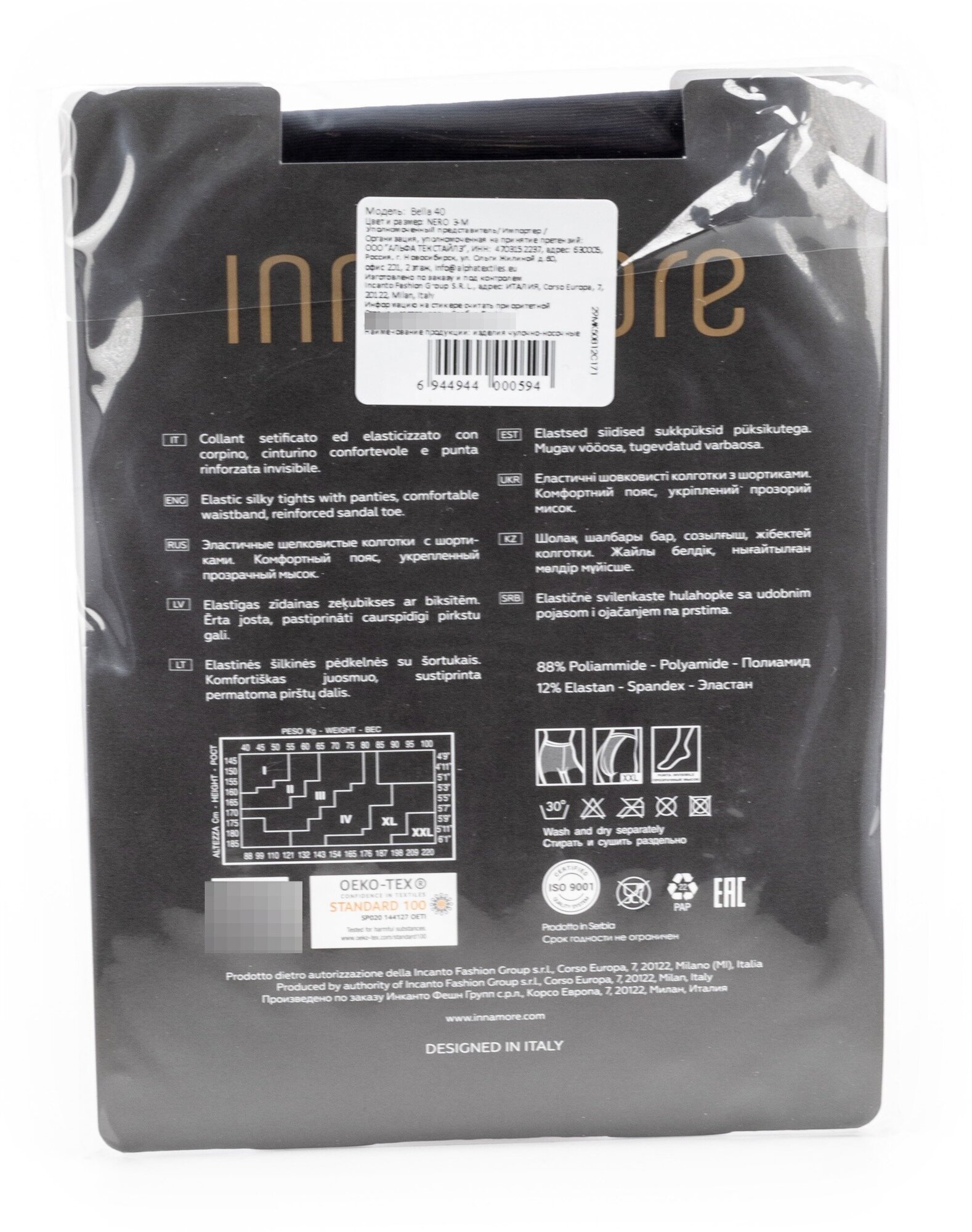 Колготки Innamore Bella 40, 40 den, размер 4, nero