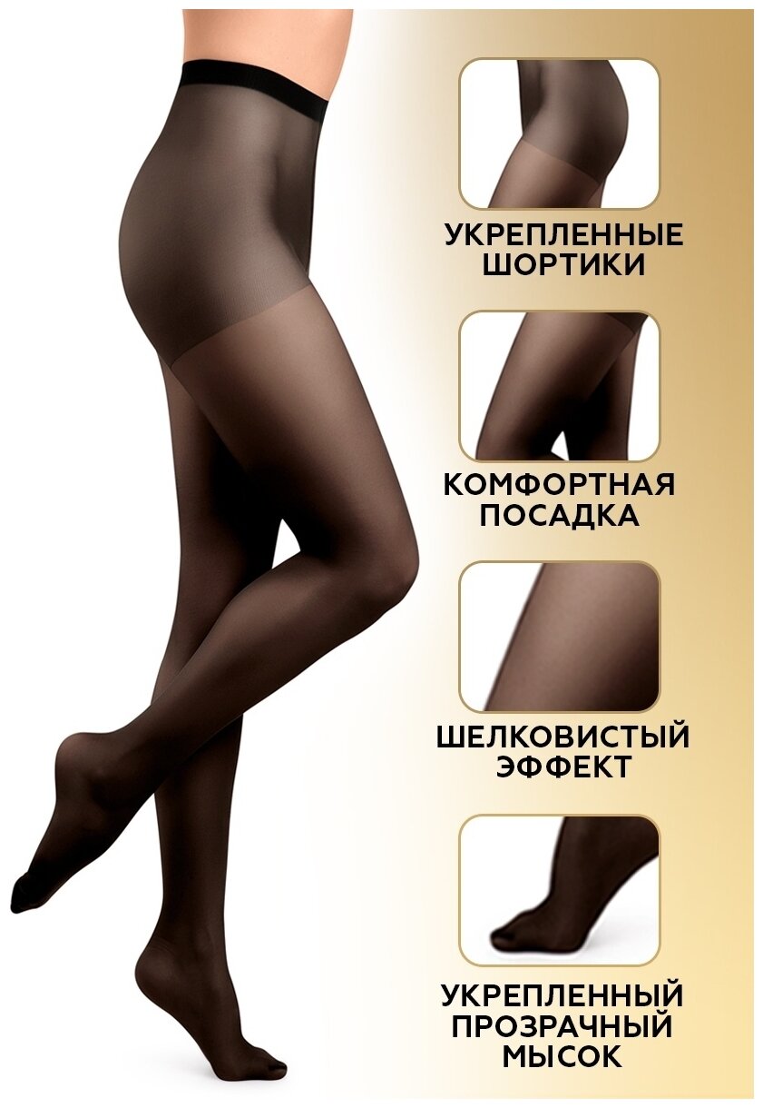 Innamore Колготки женские Bella 20 den, шортики, nero, размер 2, 2 уп