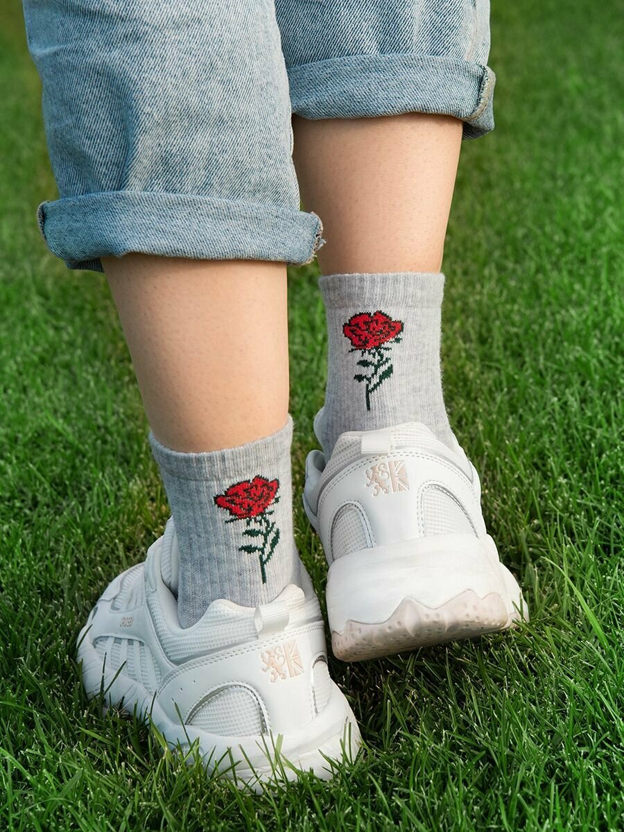 Купить Носки Happyfox с принтом хлопковые прикольные HF0238Bрозочка.св.серыймеланж