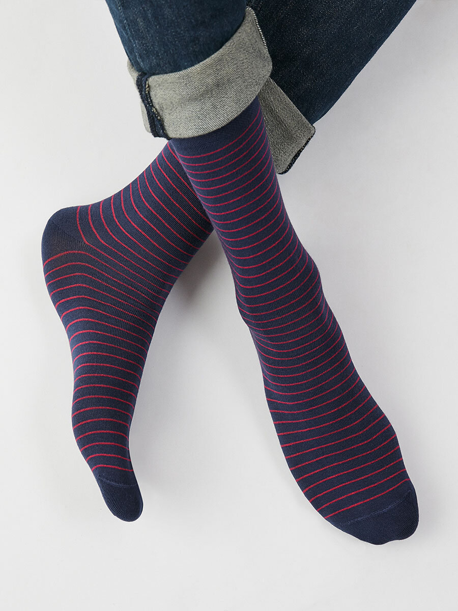 Носки Omsa "Style", 501, размер 42, Rosso, цвет темно-синие с красной полоской