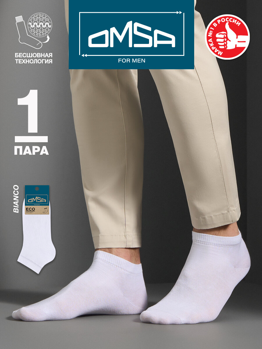 Носки мужские хлопковые Omsa ECO 402 гладь укороченный Bianco 45-47