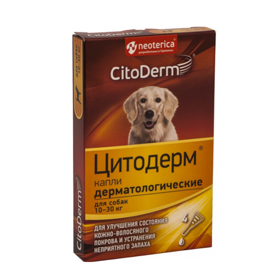 Купить Цитодерм Капли дерматологические для собак 10-30кг 4пипетки*1мл