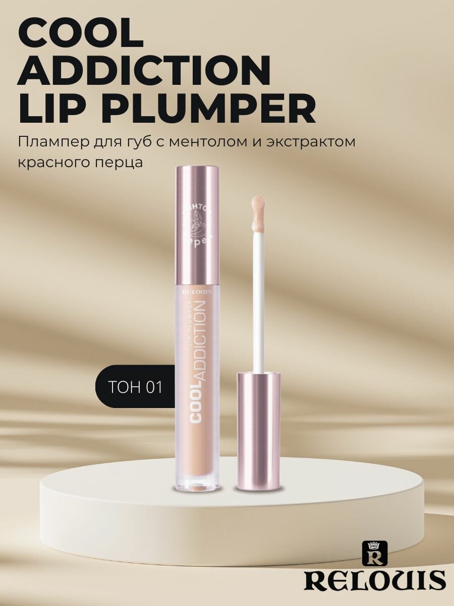Блеск для губ RELOUIS COOL ADDICTION LIP PLUMPER плампер тон 01 персиковый