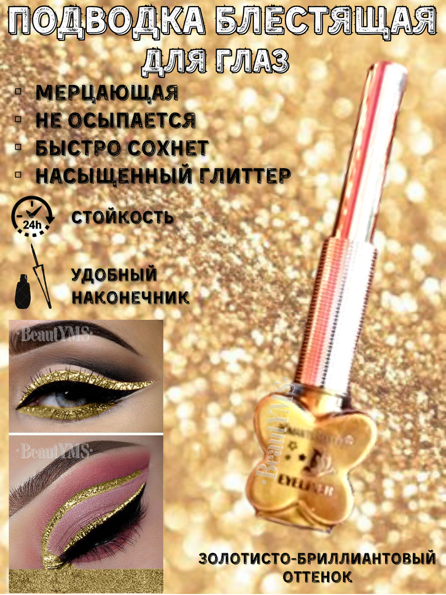 Подводка для глаз жидкая водостойкая BeautYMS с блестками золотистая интересное: