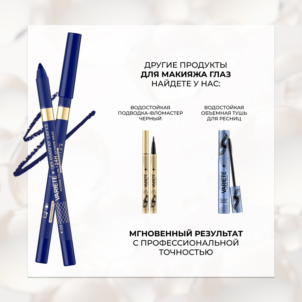 СохранитьКарандаш для глаз EVELINE VARIETE INTESE COLOUR гелевый водостойкий оттенок №03 BLUE интересное: