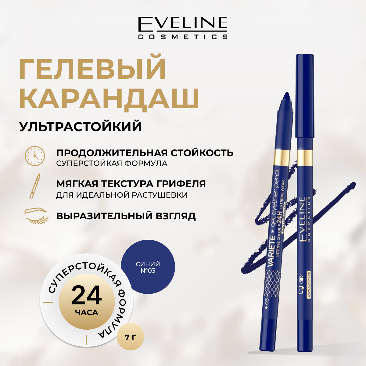 Купить Карандаш для глаз EVELINE VARIETE INTESE COLOUR гелевый водостойкий оттенок №03 BLUE