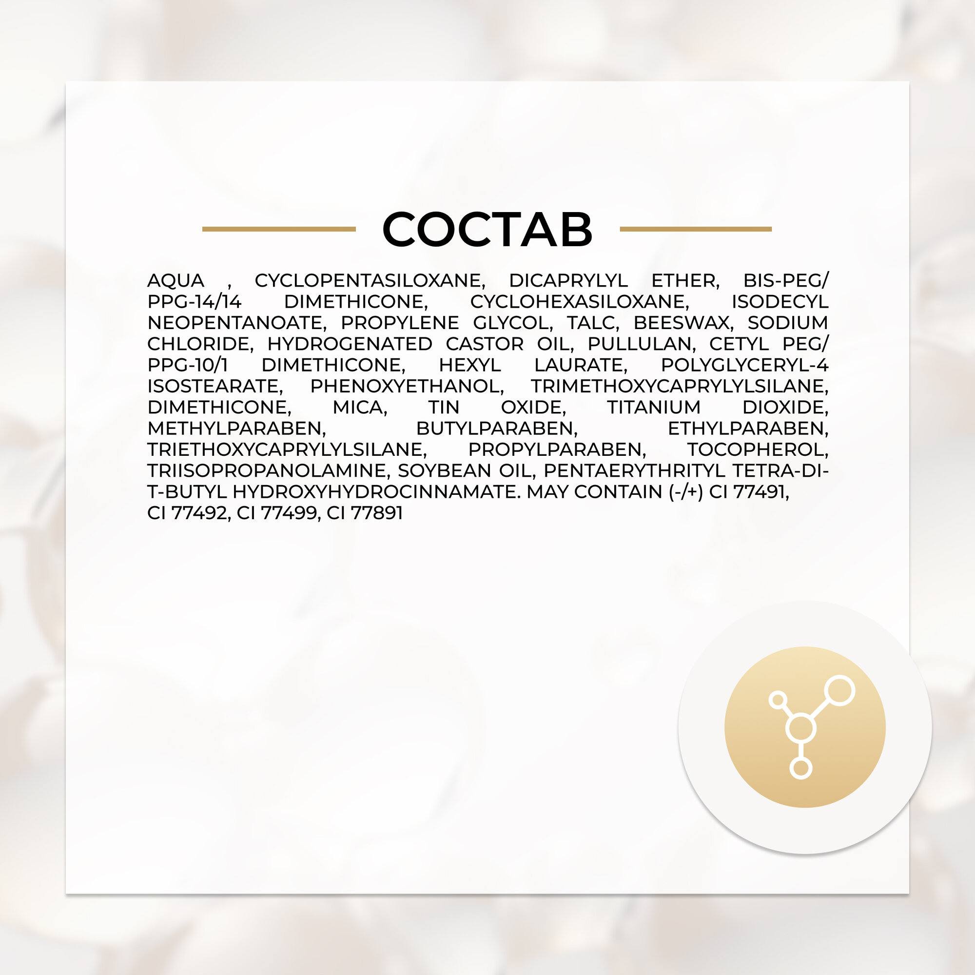 | Состав | aqua (water), cyclopentasiloxane, dicaprylyl ether, bis-peg/ppg-14/14 dimethicone, cyclohexasiloxane, isodecyl neopentanoate, propylene glycol, talc, beeswax, sodium chloride, hydrogenated castor oil, pullulan, cetyl peg/ppg-10/1 dimethicone, hexyl laurate, polyglyceryl-4 isostearate, phenoxyethanol, trimethoxycaprylylsilane, dimethicone, mica, tin oxide, methylparaben, butylparaben, ethylparaben, triethoxycaprylylsilane, propylparaben, tocopherol, triisopropanolamine, pentaerythrityl tetra-di-t-butyl hydroxyhydrocinnamate. may contain (-/+): ci 77491, ci 77492, ci 77499, ci 77891 |