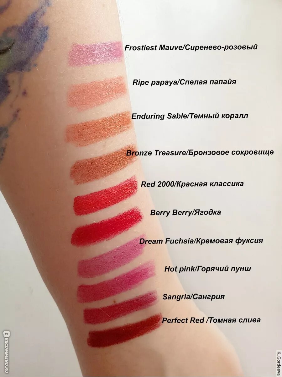| Способ применения | Стиком помады или плоской кистью для макияжа губ нанеси помаду, очерчивая контур губ. Затем нанеси помаду на губы, двигаясь от центра к уголкам губ. Для максимальной стойкости промокни уже накрашенные губы салфеткой и нанеси еще один слой помады. Для создания более четкого контура предварительно нанеси карандаш для губ: обведи контур и затем заполни губы карандашом полностью, с ним помада будет держаться дольше и не растечется. Чтобы создать растушеванный контур, нанеси и растушуй помаду пушистой кистью для теней или пальцем. |
