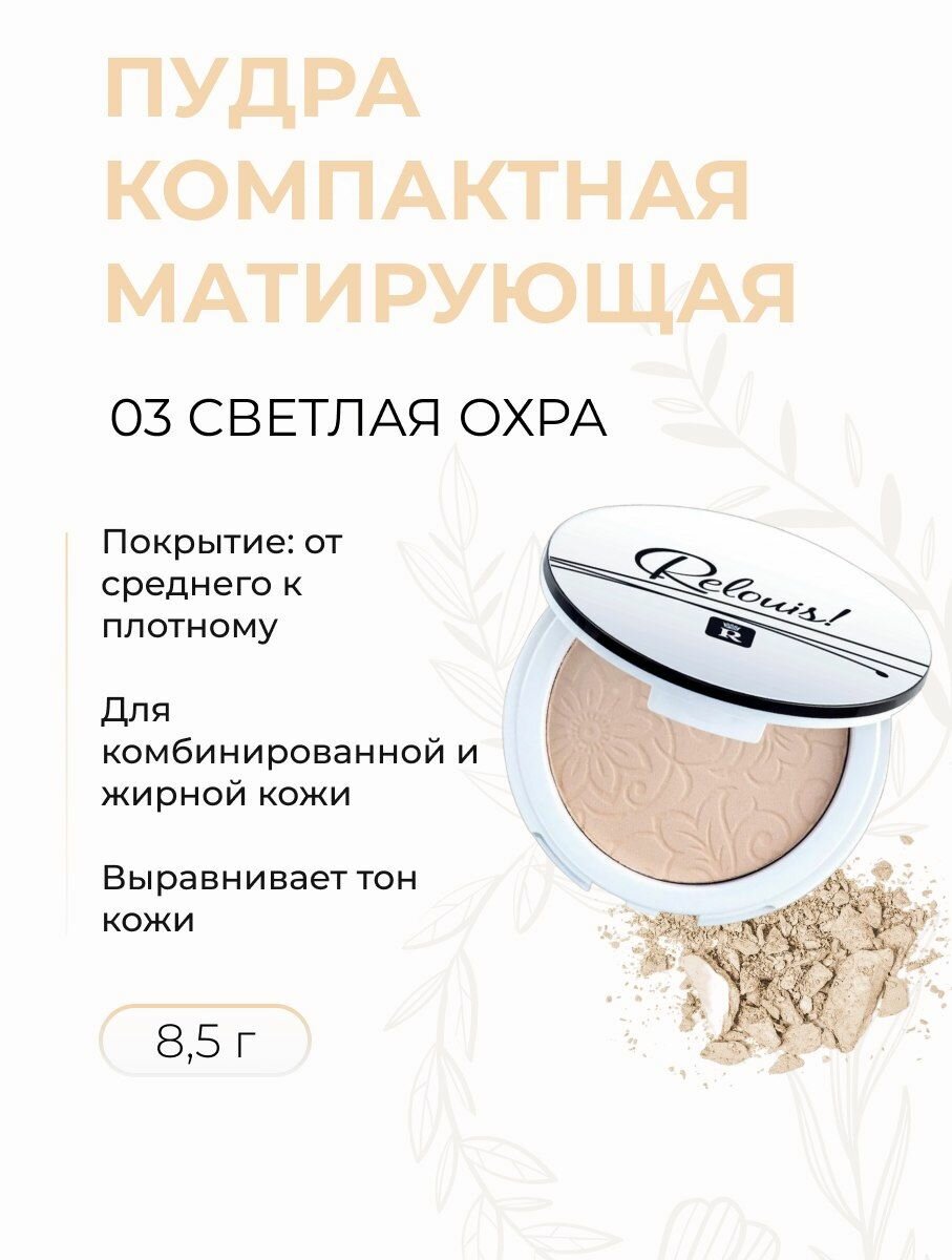 RELOUIS Пудра для лица компактная матирующая тон 03 Светлая охра 8,5 г