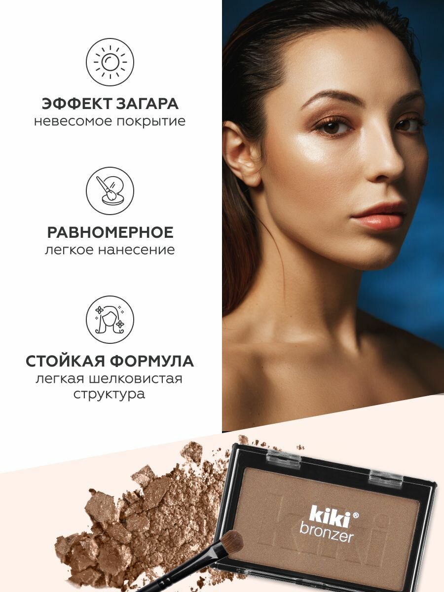 Бронзер для лица kiki BRONZER 101 светло-медный сияющий компактный рассыпчатый скульптор с шиммером , кики интересное:
