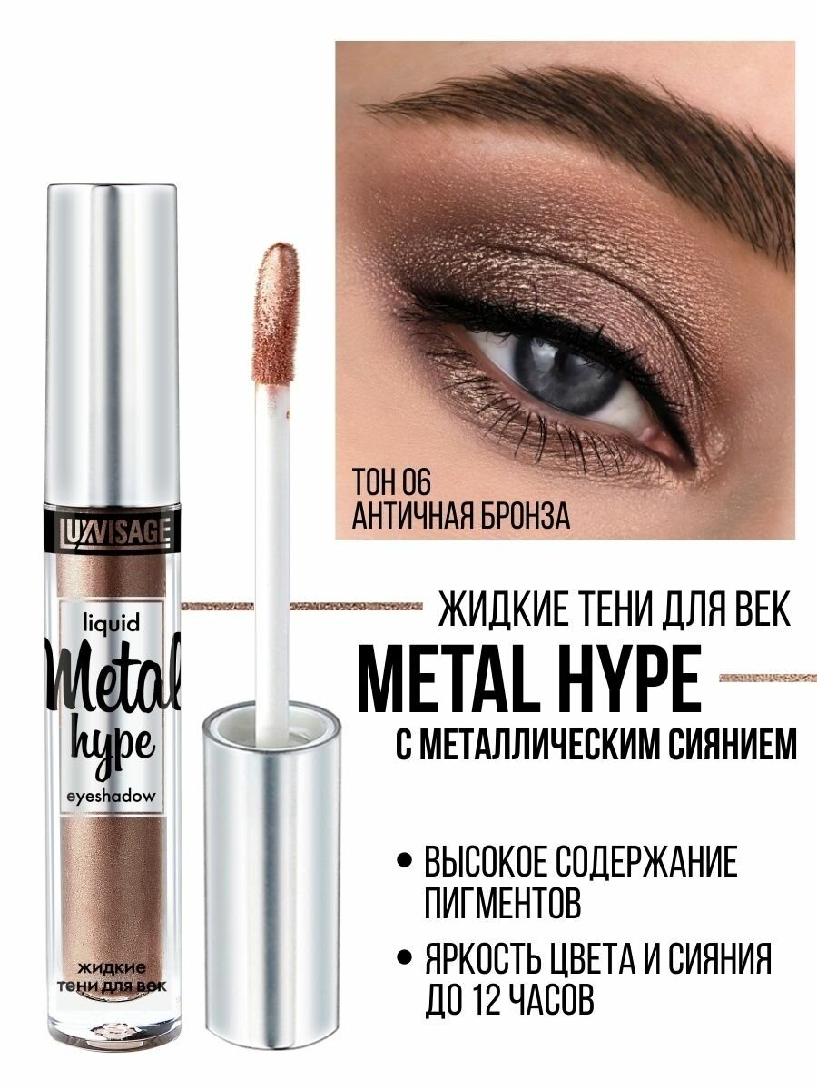 Тени для век LUXVISAGE, Metal hype, Античная бронза, жидкие, стойкие, с металлическим сиянием, тон 06, 2 уп
