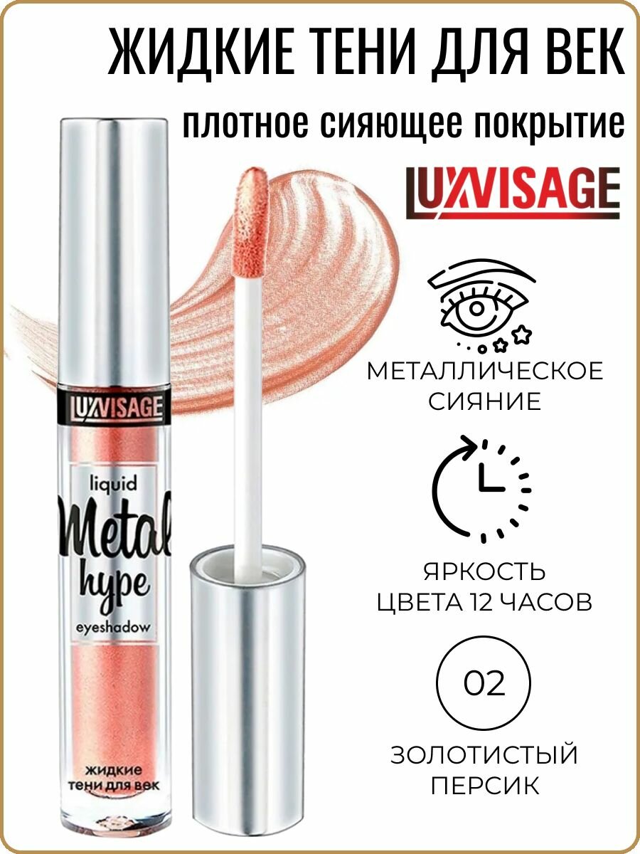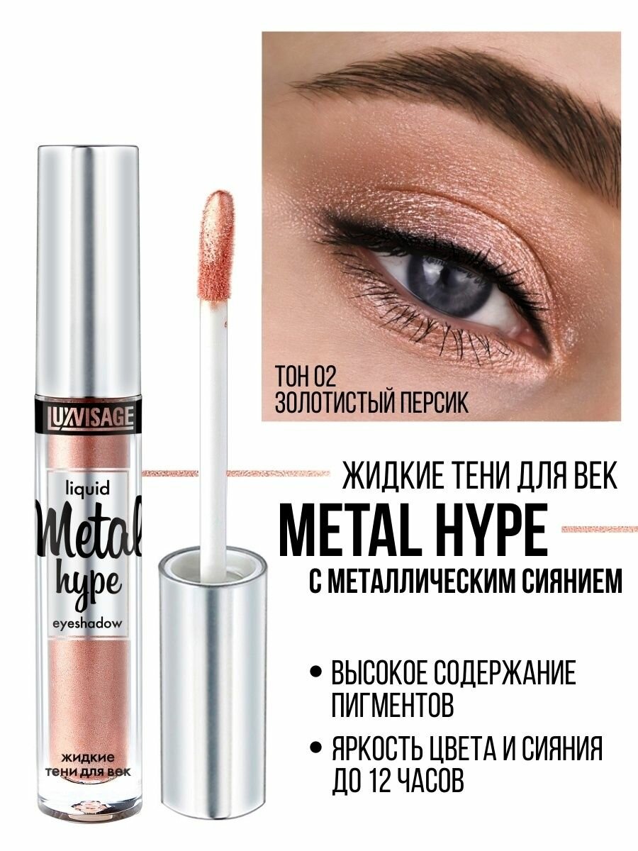 Купить Тени для век жидкие Metal hype тон 02 (золотистый персик) - Luxvisage