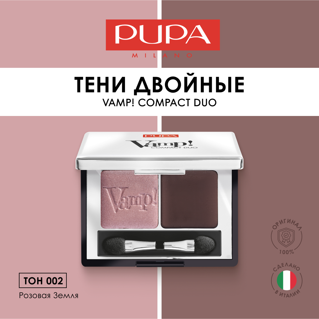 Ниже Вы можете прочитать отзывы на PUPA Тени для век двойные компактные VAMP! DUO 002 розовая земля, ознакомится с подробными характеристиками, посмотреть интересные обзоры и фотографии на PUPA Тени для век двойные компактные VAMP! DUO 002 розовая земля.
