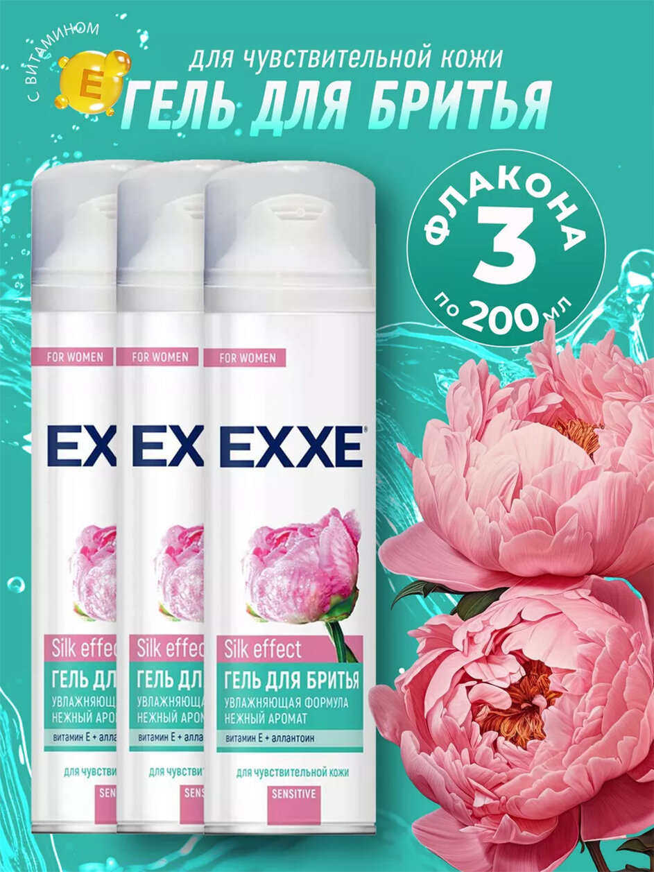 Гель для бритья EXXE Sensitive Silk effect 200мл, набор 3шт, увлажняющий, для чувствительной кожи интересное: