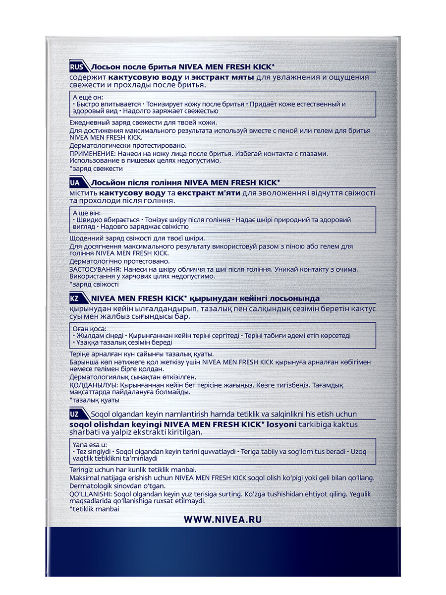 Купить Лосьон после бритья Nivea MEN Fresh Kick Приятная свежесть с мятой, 100 мл