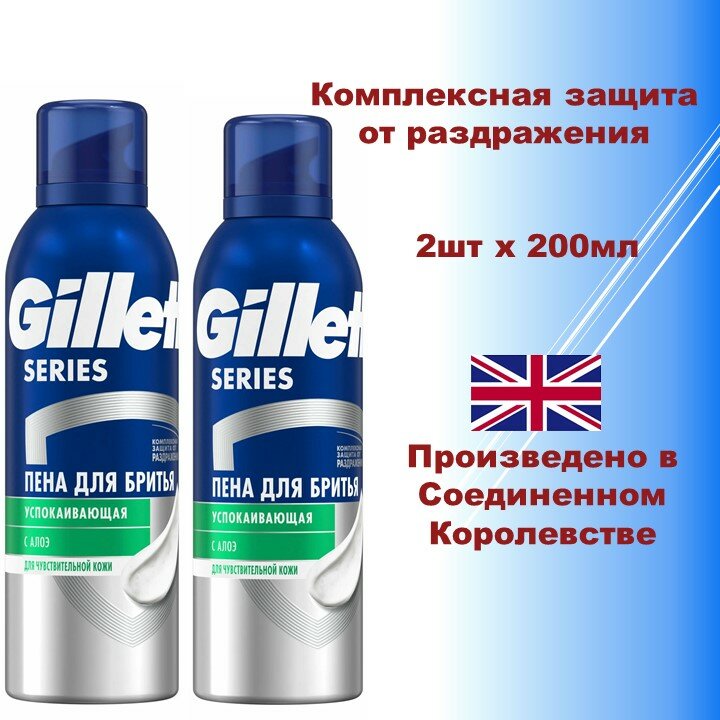 Мужская пена для бритья Gillette Series для чувствительной кожи, успокаивающая, 2шт интересное: