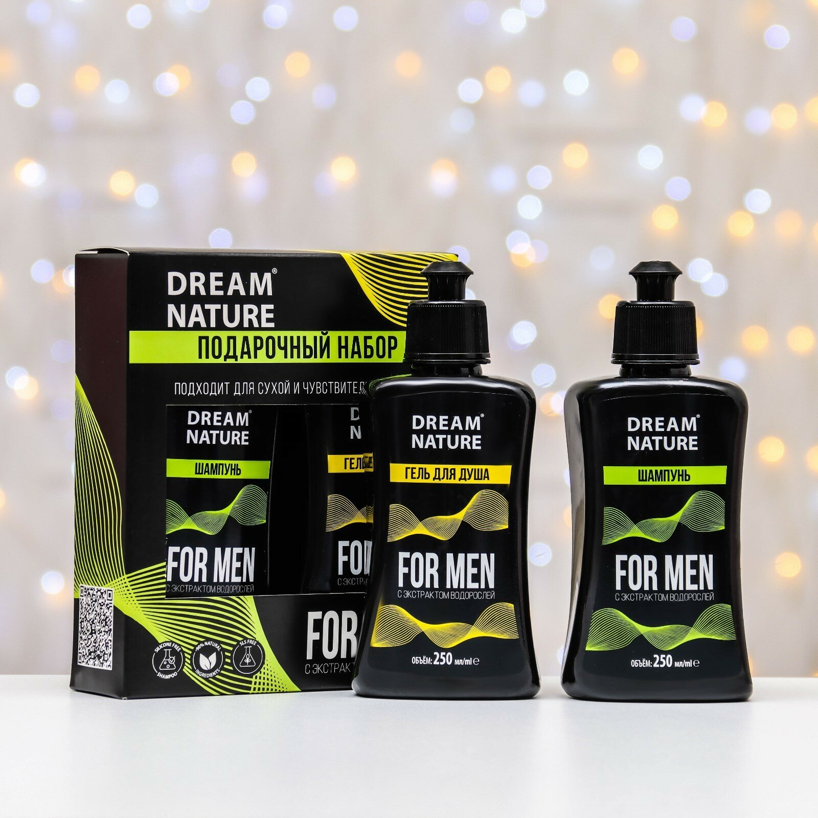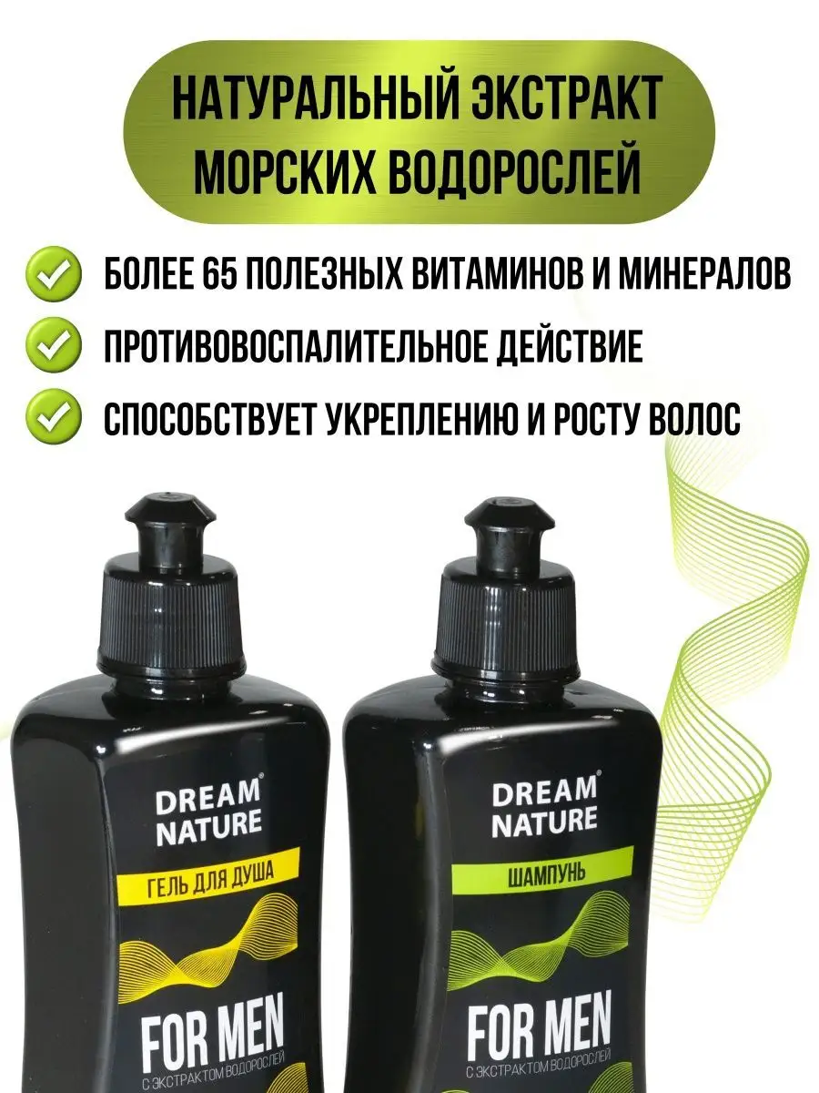 Подарочный набор мужской Dream Nature "FOR MEN" с экстрактом водорослей, шампунь 250 мл + гель 250 мл