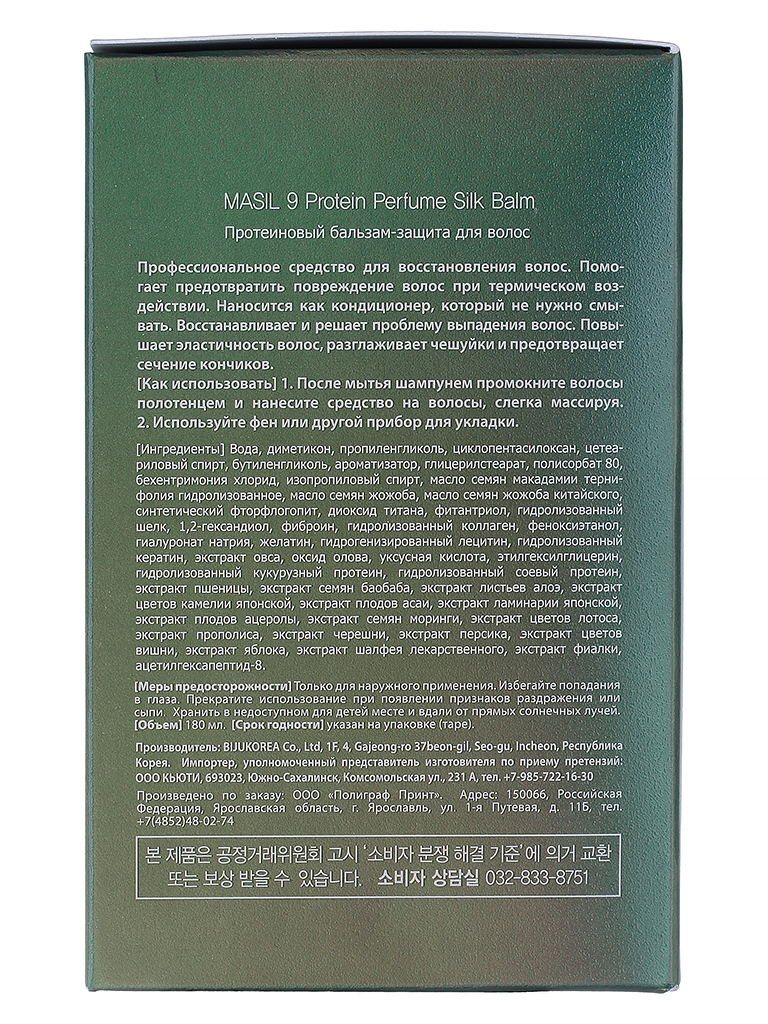 Masil Несмываемый бальзам 9 Protein Perfume Silk для поврежденных волос, 180 мл