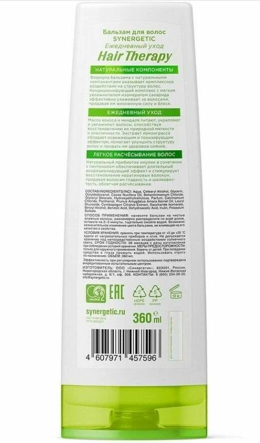 Бальзам для волос SYNERGETIC "Ежедневный уход" HAIR THERAPY, 360 мл
