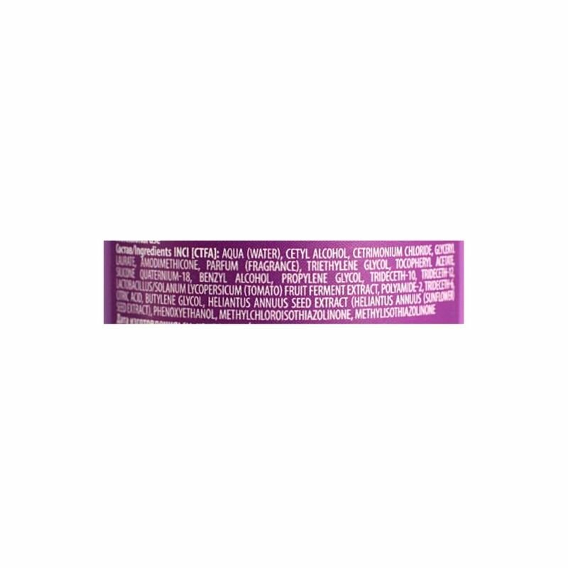 | Состав | aqua (water), cetyl alcohol, cetrimonium chloride, glyceryl laurate, amodimethicone, parfum (fragrance), triethilene glycol, tocopheryl acetate, silicone quaternium-18, benzyl alcohol, propylene glycol, trideceth-10, trideceith-6, lactobacillus/solanum lycopersicum (tomato) fruit ferment extract, trideceth-12, polyamide-2, butylene glycol, citric acid, heliantus annuus (sunflower) seed extract, phenoxyethanol, methylchloroisothiazolinone methylisothiazolinone |