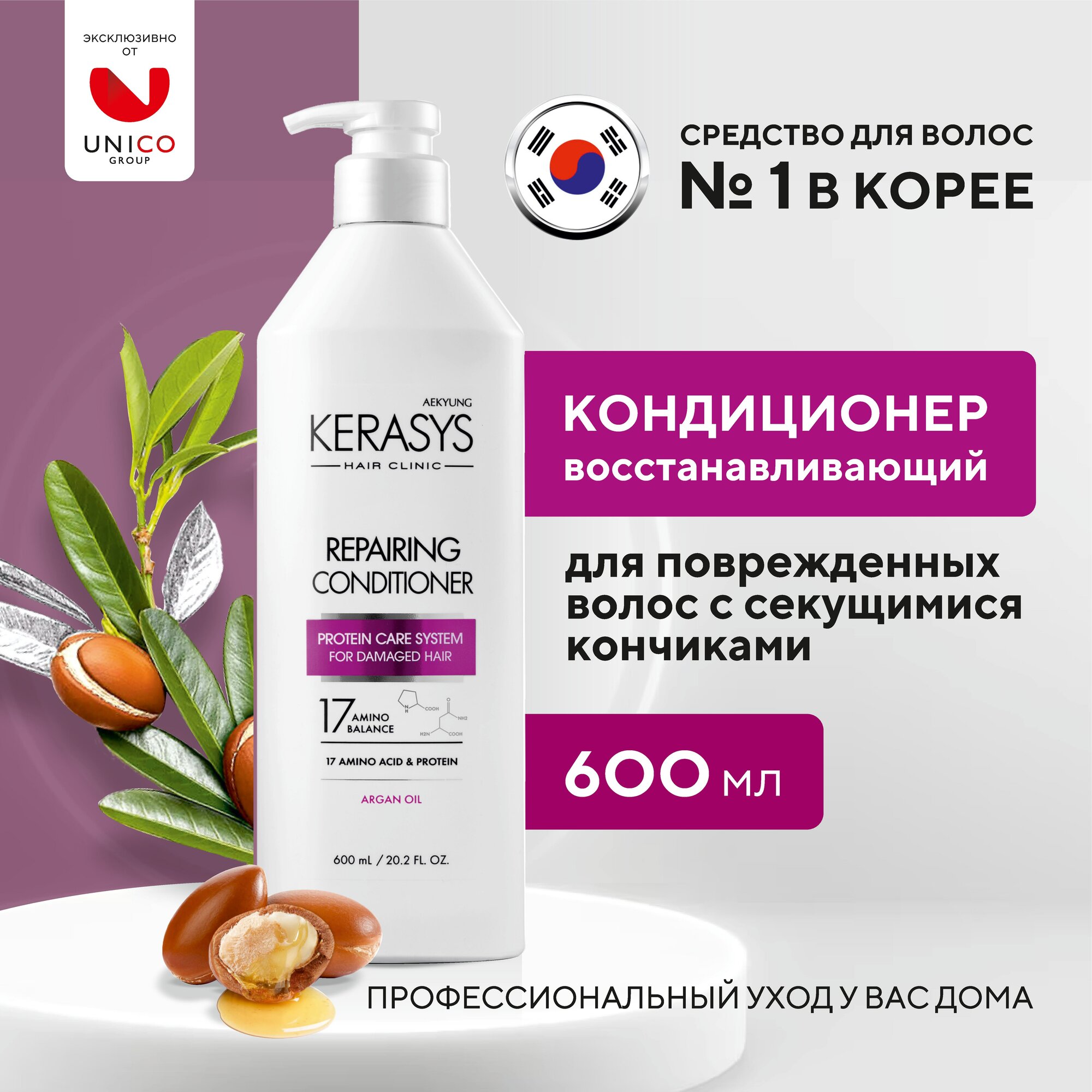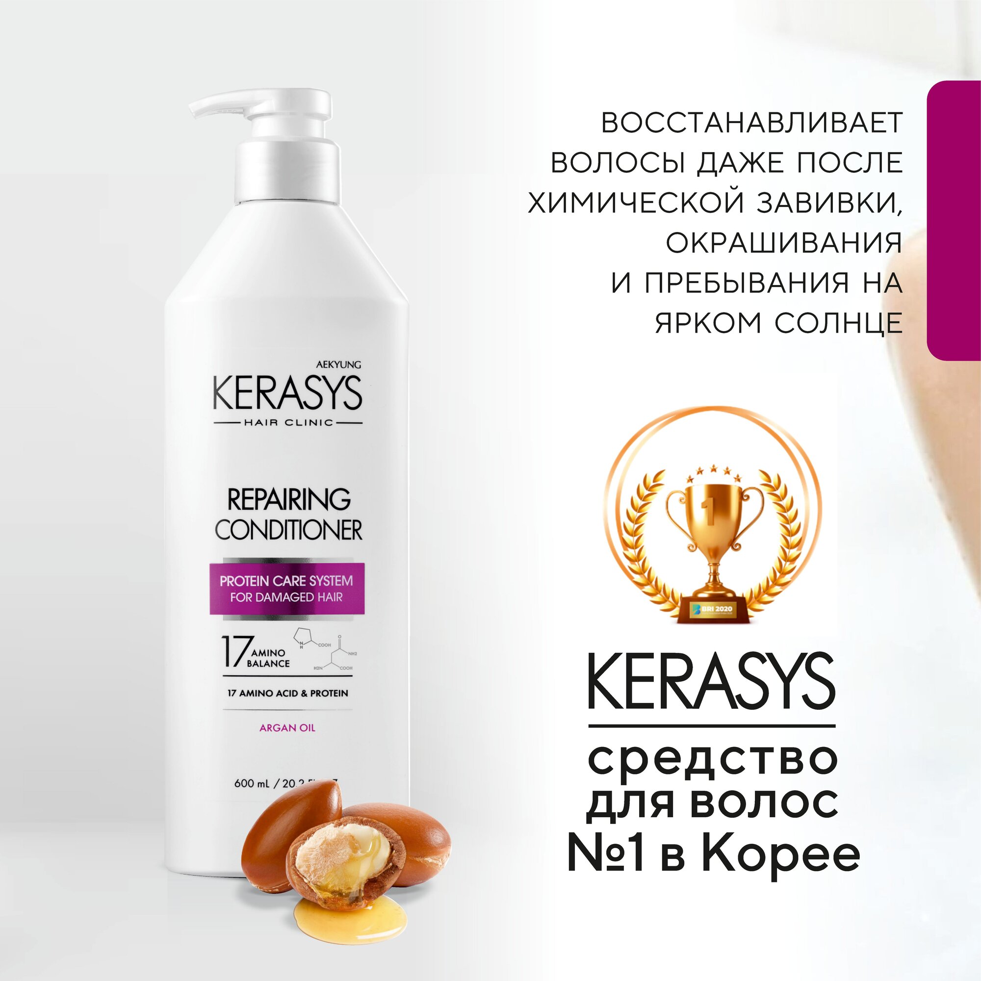 Купить Kerasys Корейский Кондиционер для сухих волос Восстанавливающий 600 мл, Профессиональный бальзам для окрашенных, сухих, поврежденных и ослабленных волос, женский, Корея