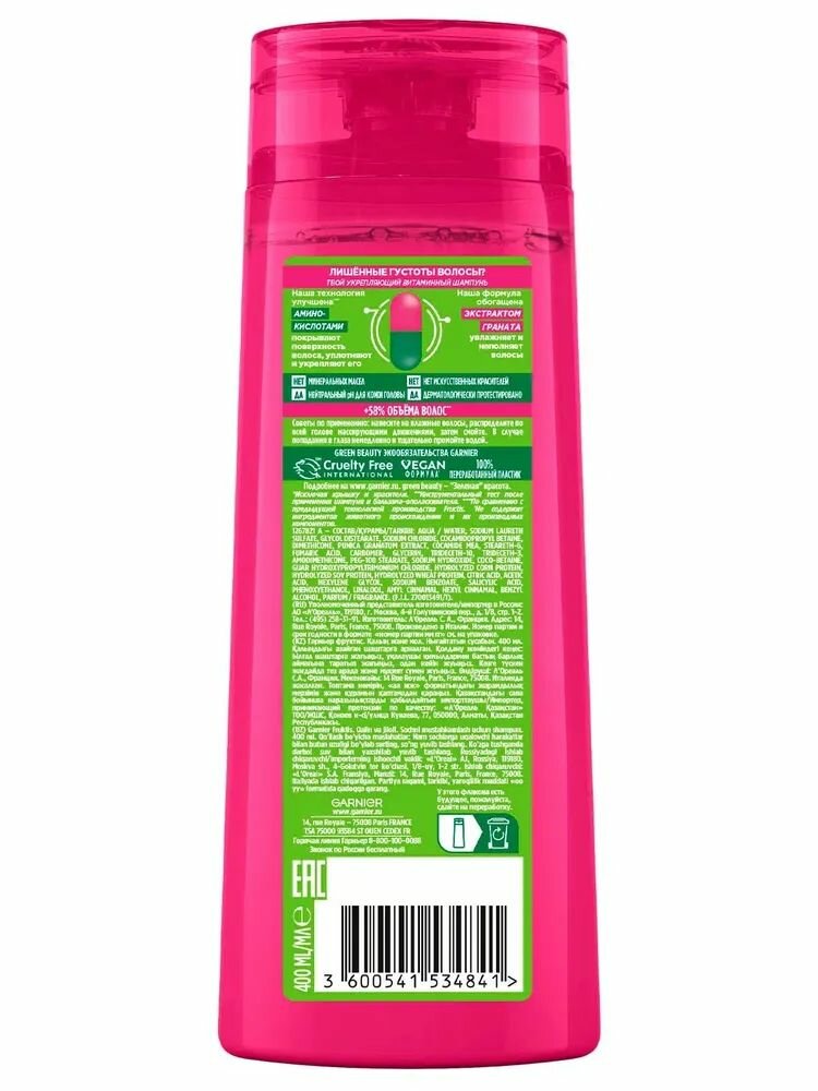 Ниже Вы можете прочитать отзывы на Garnier Fructis Шампунь для волос укрепляющий Густые и Роскошные для лишенных густоты волос, 400 мл, ознакомится с подробными характеристиками, посмотреть интересные обзоры и фотографии на Garnier Fructis Шампунь для волос укрепляющий Густые и Роскошные для лишенных густоты волос, 400 мл.
