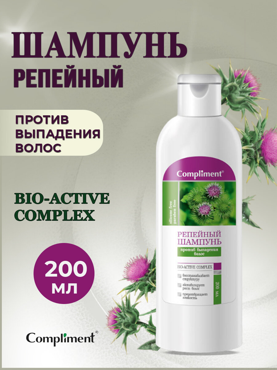 Compliment Репейный Шампунь для волос против выпадения, без спирта, парабенов и силиконов, 200 мл
