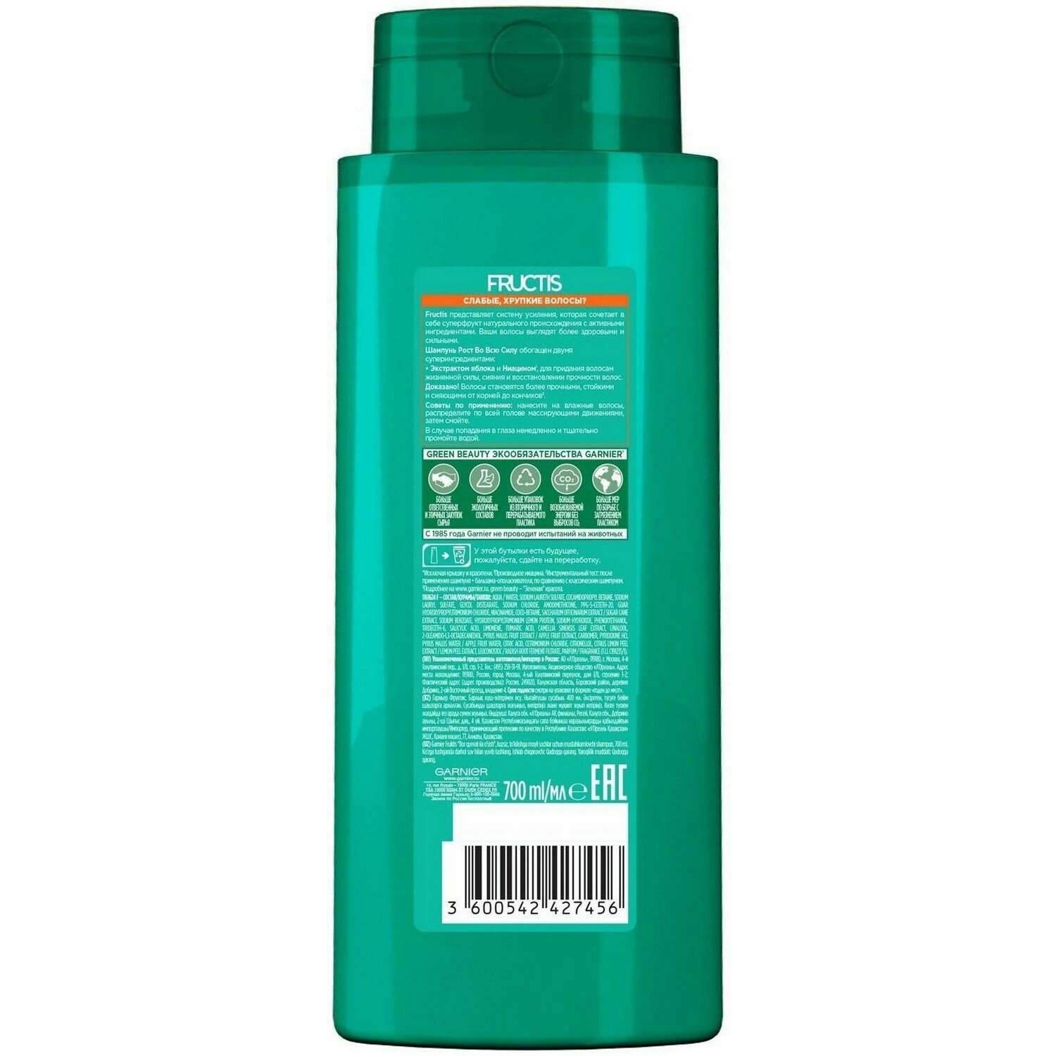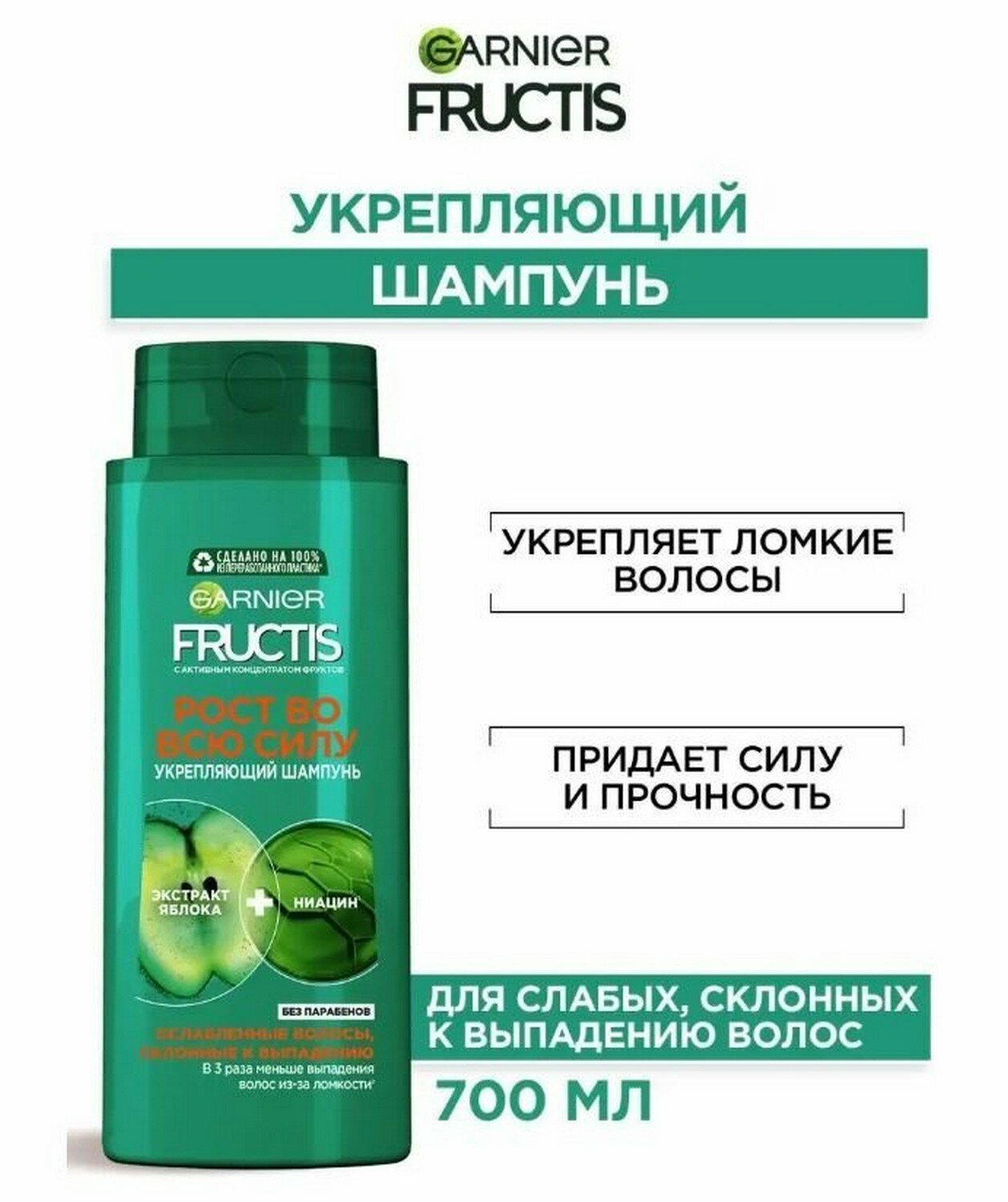 Garnier Fructis Укрепляющий шампунь "Фруктис Рост во всю Силу", для ослабленных волос, склонных к выпадению, 700 мл