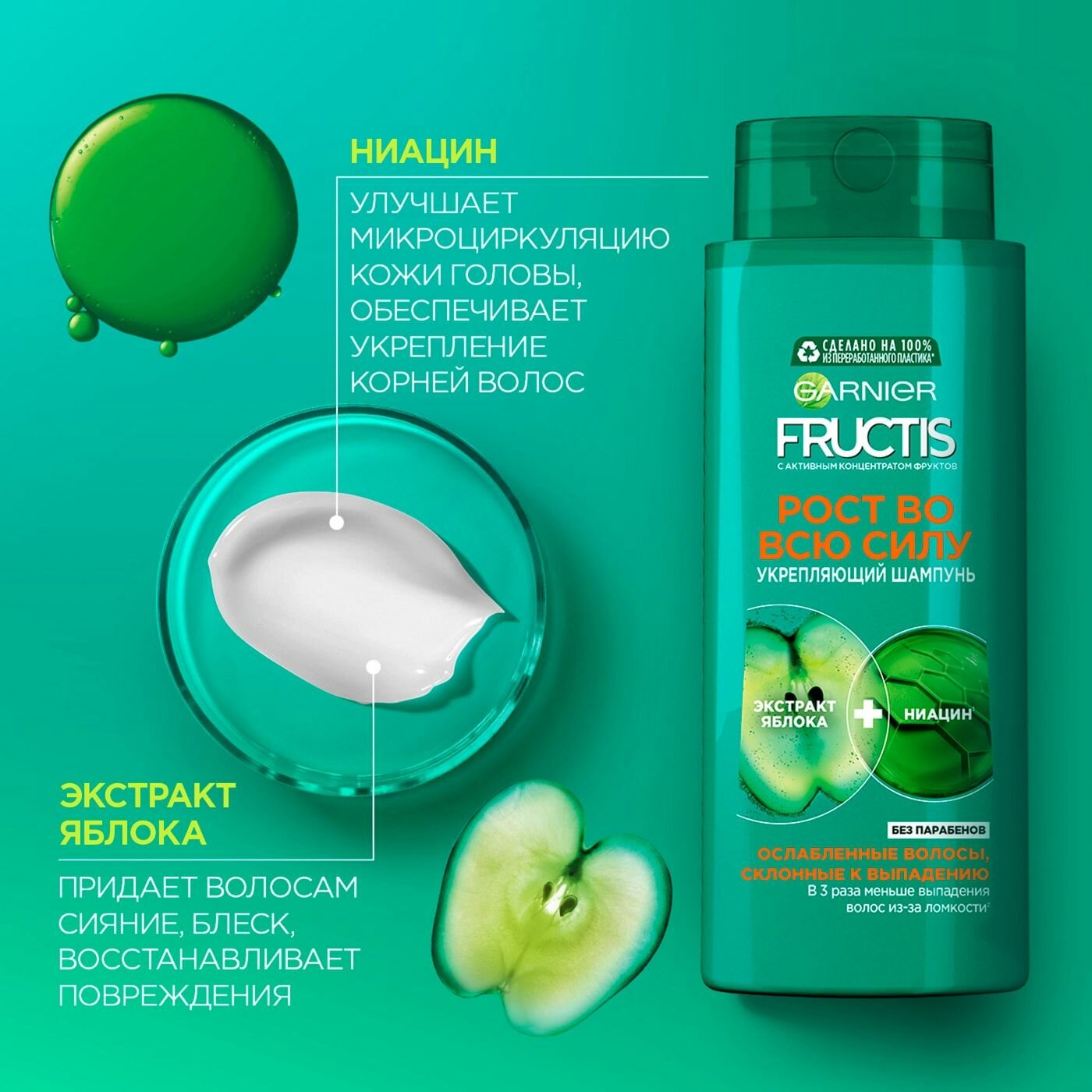 | Дополнительная информация | Шампунь способствует глубокому очищению кожи головы, оказывает отшелушивающее действие. Экстракт яблока обладает питательными свойствами, помогает сохранить здоровый вид, густоту и красоту волос. Экстракт лимона обеспечивает интенсивный укрепляющий и восстанавливающий эффект. |