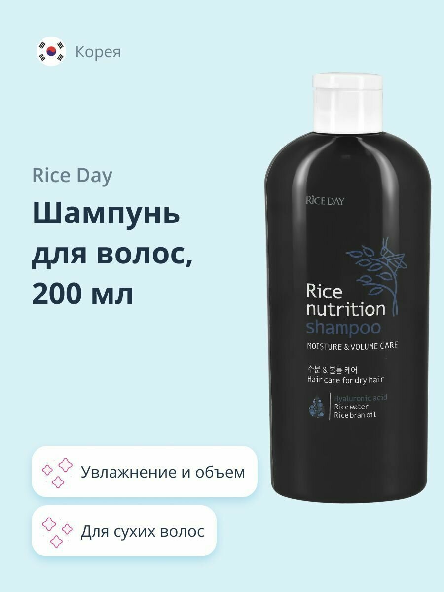 RICE DAY Шампунь для волос Увлажнение и объем (для сухих волос), 200 мл