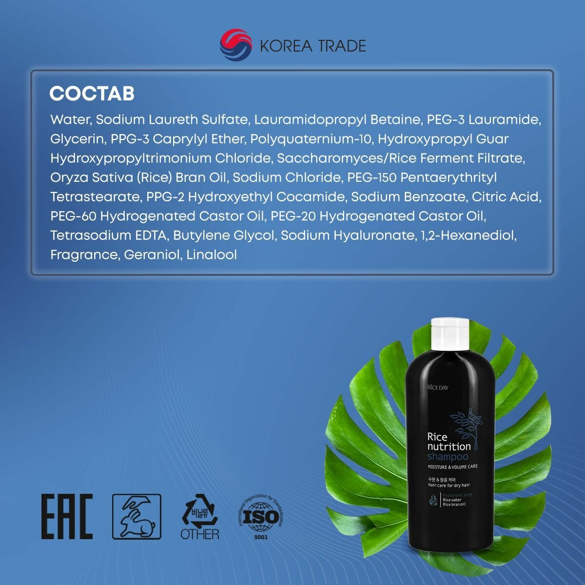 Шампунь для волос `RICE DAY` Увлажнение и объем (для сухих интересное:
