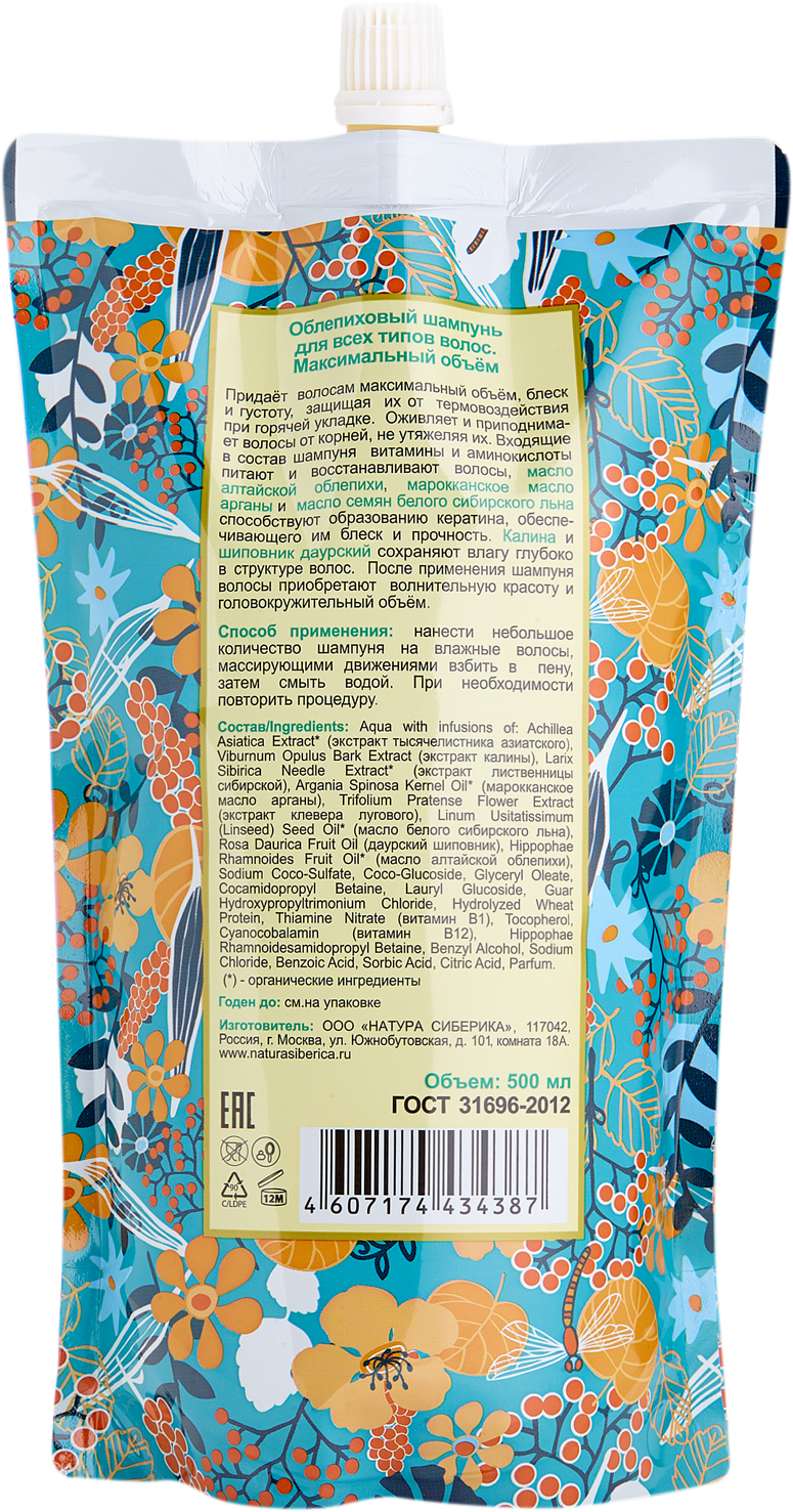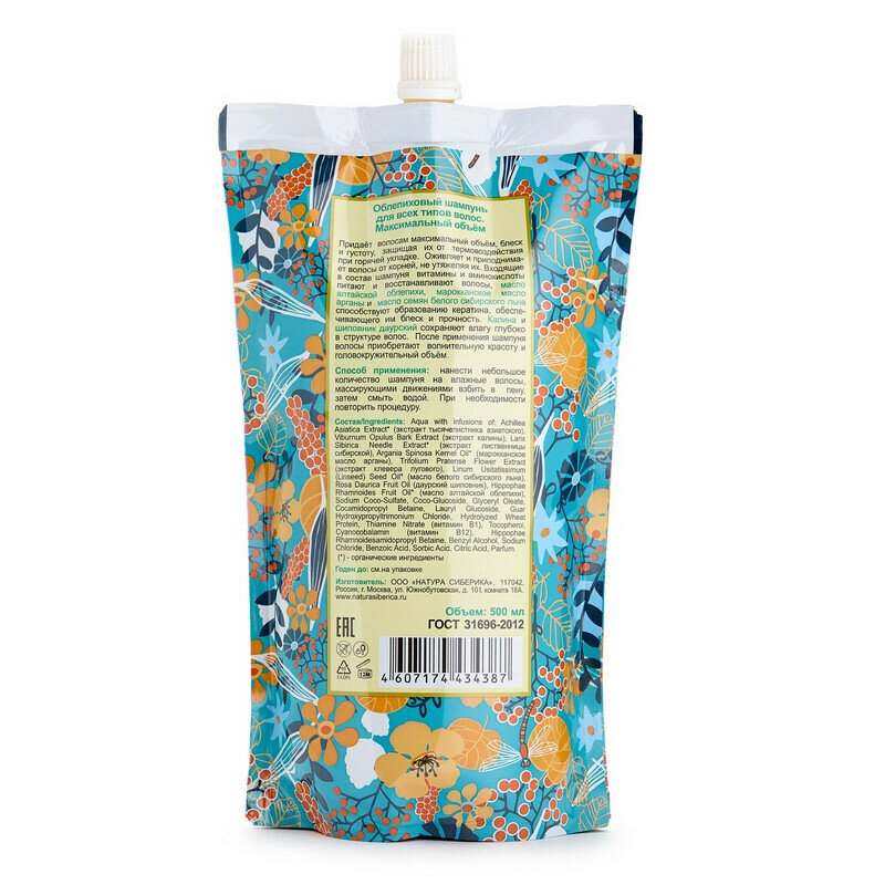 Облепиховый Шампунь для нормальных и жирных волос Дой-пак Natura Siberica 500 мл