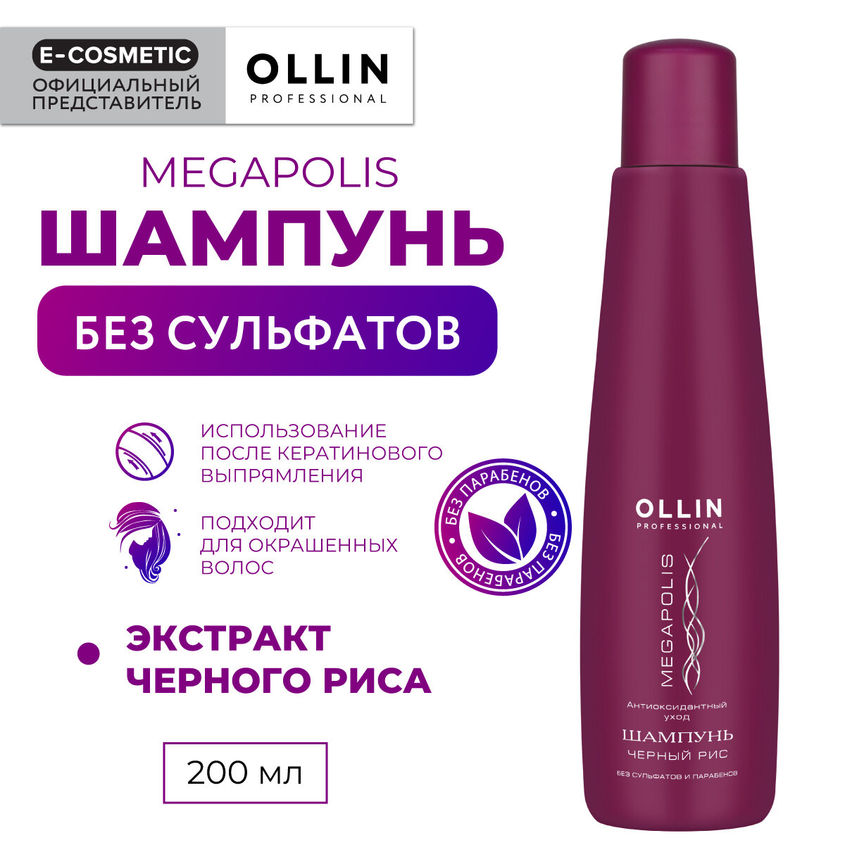 Ниже Вы можете прочитать отзывы на OLLIN / MEGAPOLIS – Шампунь на основе черного риса (без сульфатов и парабенов), 200мл, ознакомится с подробными характеристиками, посмотреть интересные обзоры и фотографии на OLLIN / MEGAPOLIS – Шампунь на основе черного риса (без сульфатов и парабенов), 200мл.